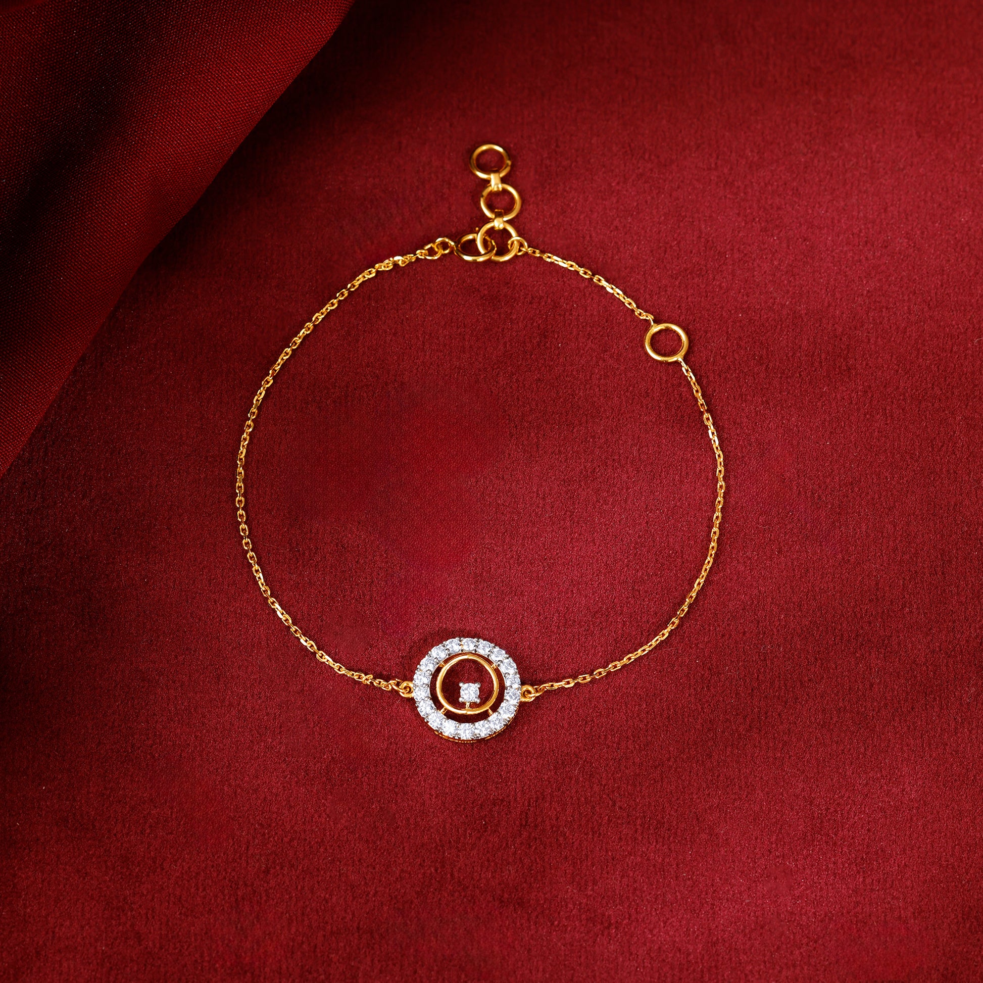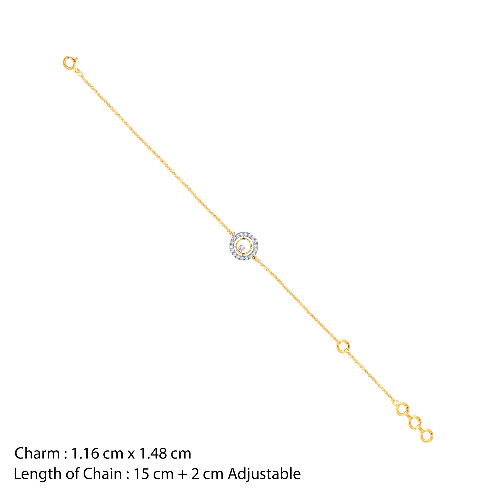 This gorgeous gold bracelet for women features a round halo centrepiece encircling a cluster of lab grown diamonds. Suspended on a fine adjustable gold chain, balancing simplicity with elegance.