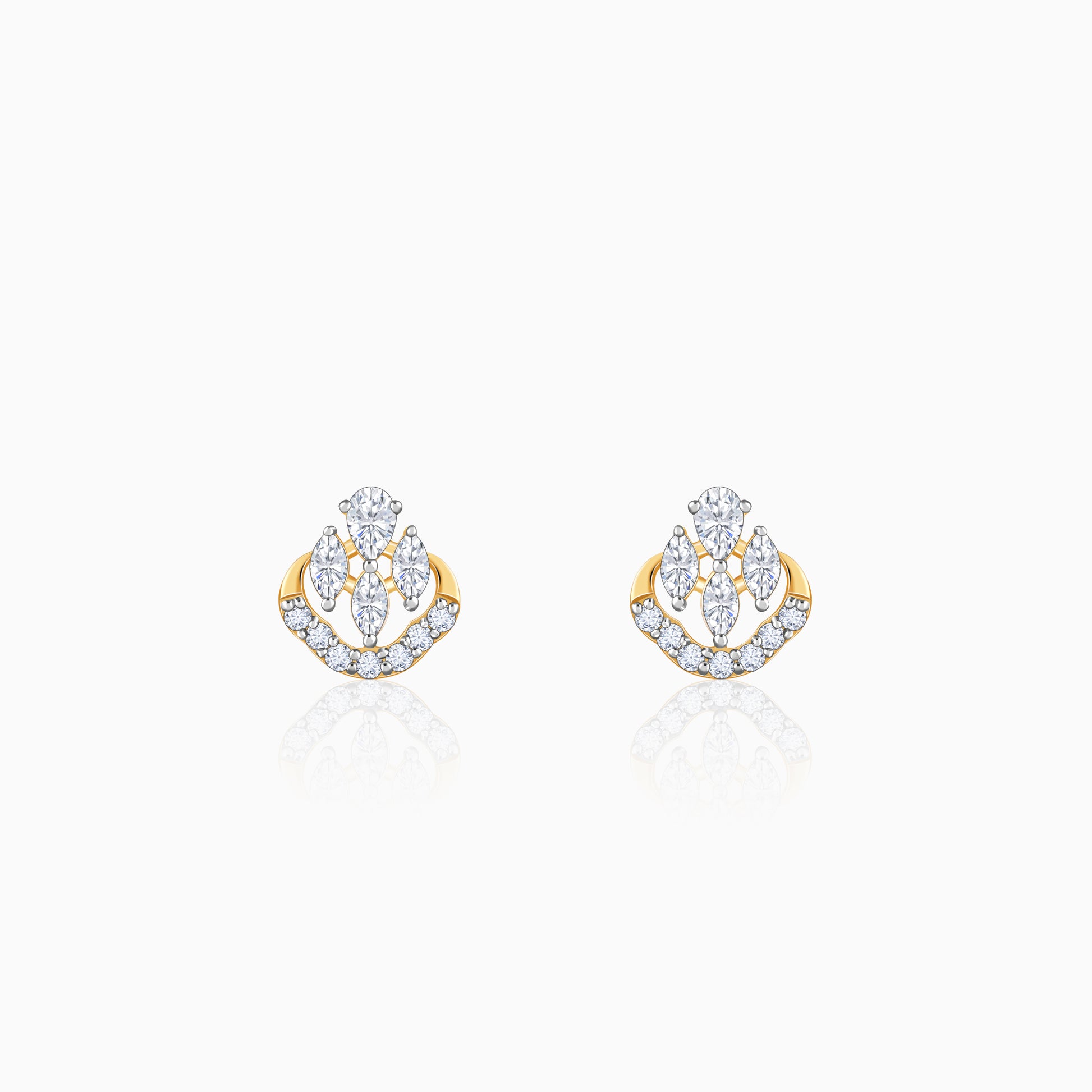 Drawing inspiration from the elegance of nature in motion, these gold earrings feature a swirling silhouette with four leaf-like cuts, each glistening with lab-grown diamonds. The encircling gold band, lined with diamonds, adds a luminous touch of modern sophistication.