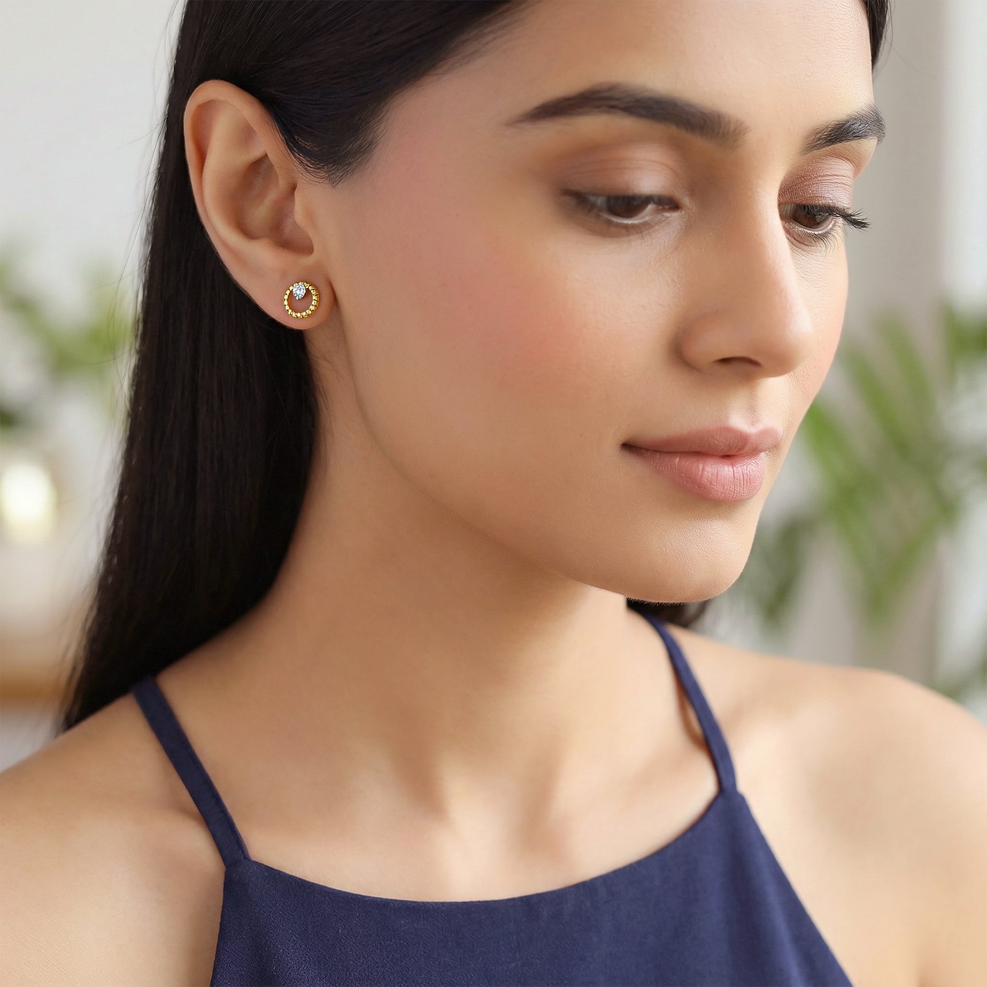 These gold studs feature a solitaire lab grown diamond in the centre, encircled in a ridged gold band. Lightweight, easy to wear, and oh-so-perfect for everyday magic - you definitely need these modern essentials in your jewellery collection. Try the exquisite lab grown diamond jewellery from Heer By GIVA today.