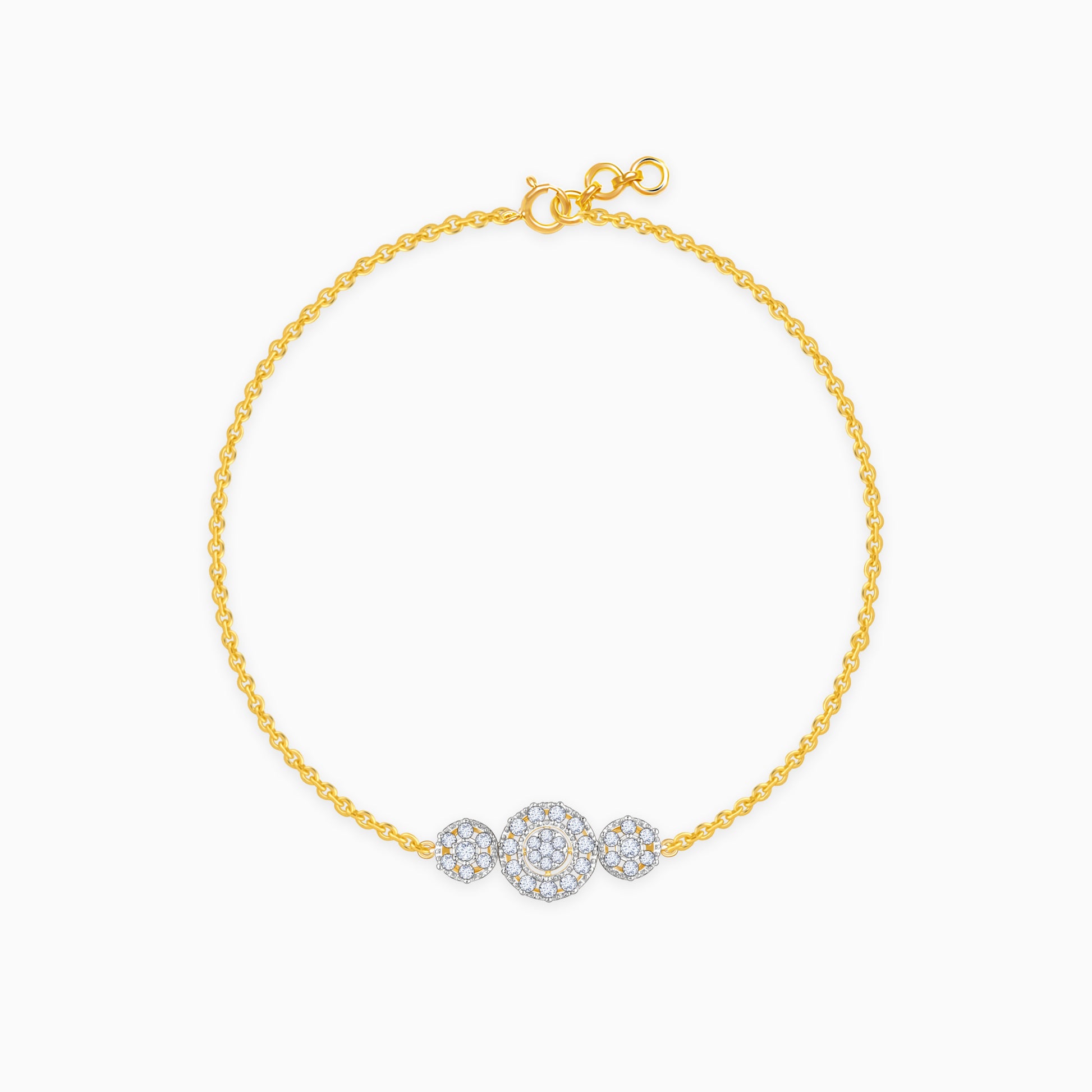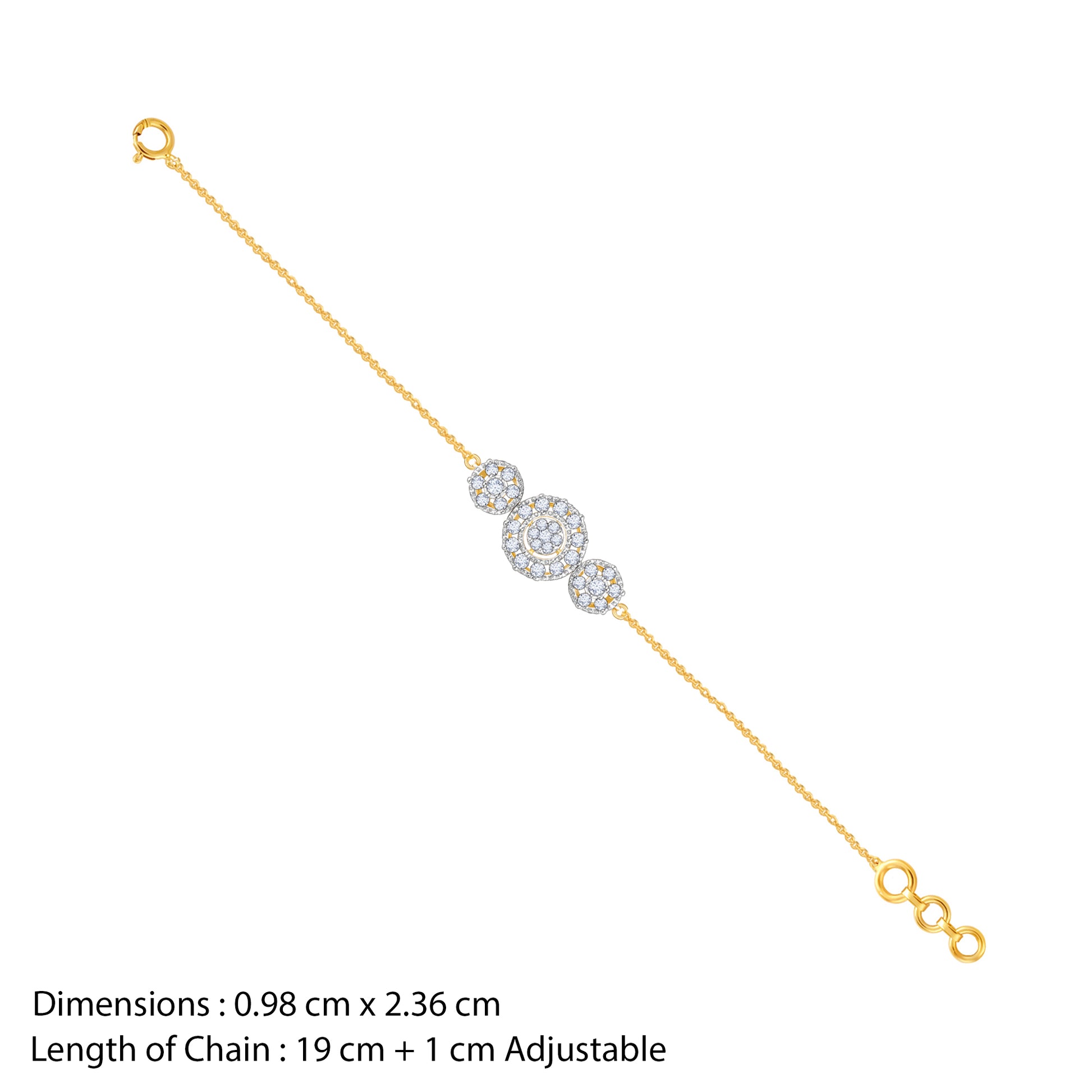 This pure gold bracelet features a circle motif at the centre, with two flower designs on both sides, studded with lab-grown diamonds.
