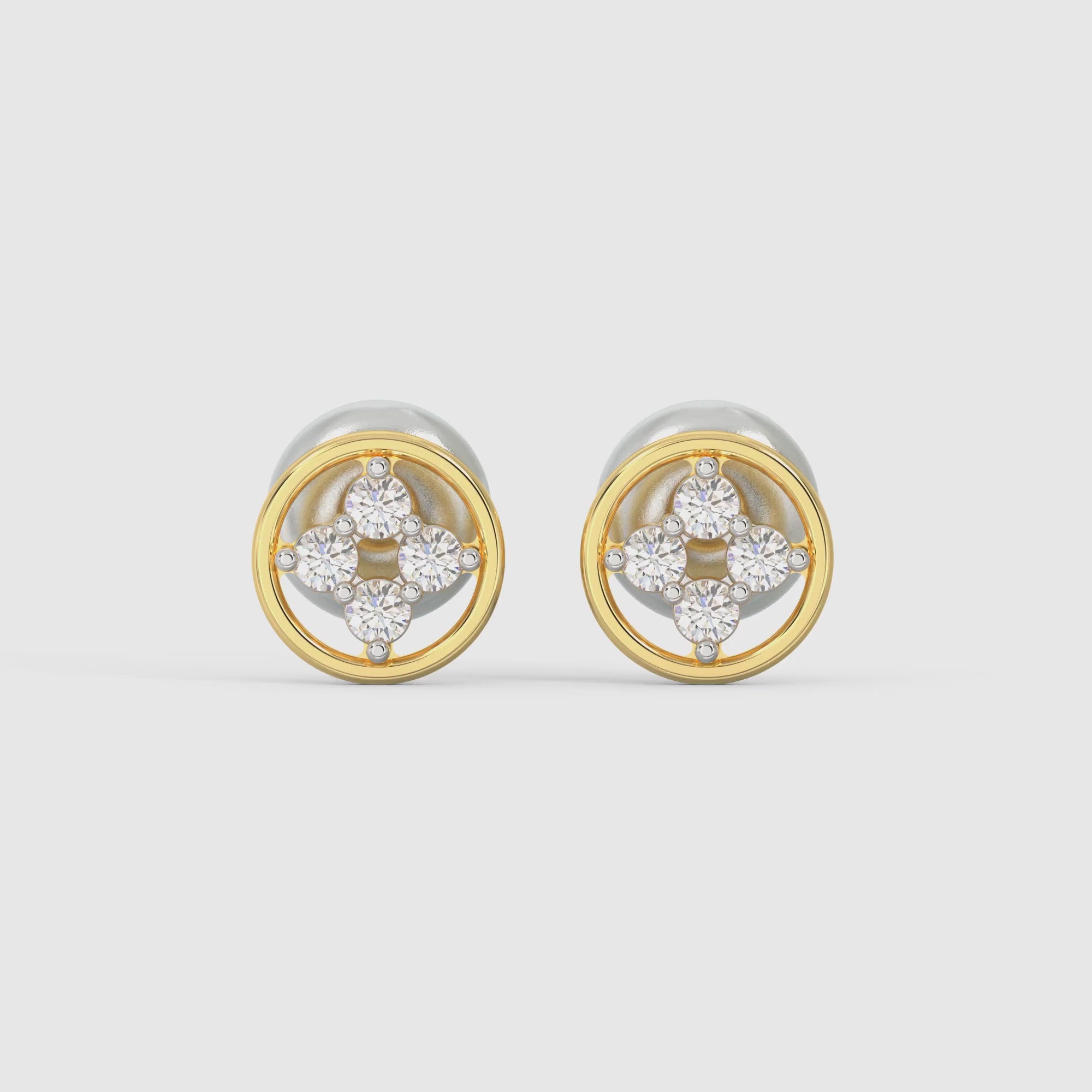 These gold stud earrings have circle motif studded with lab-grown diamonds.