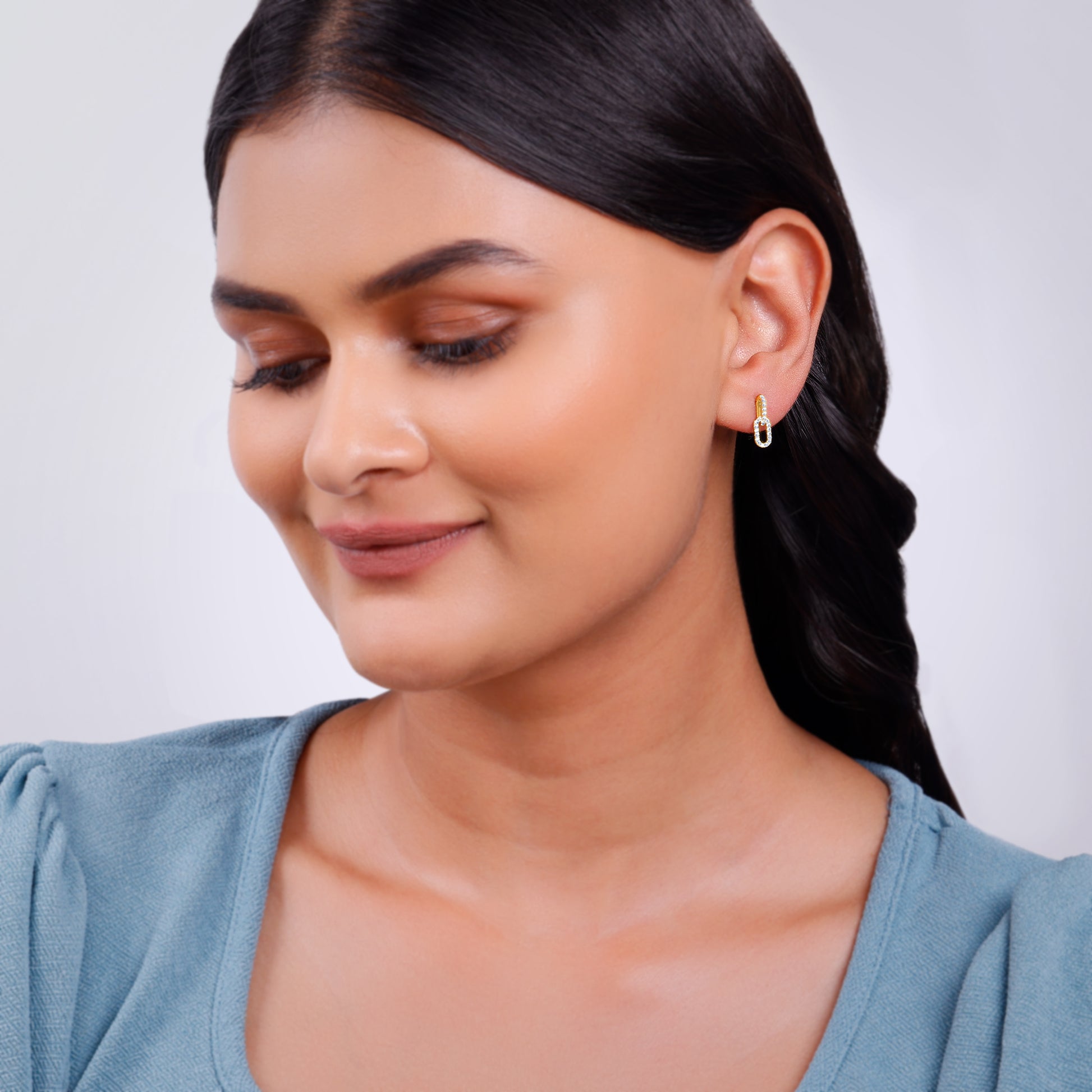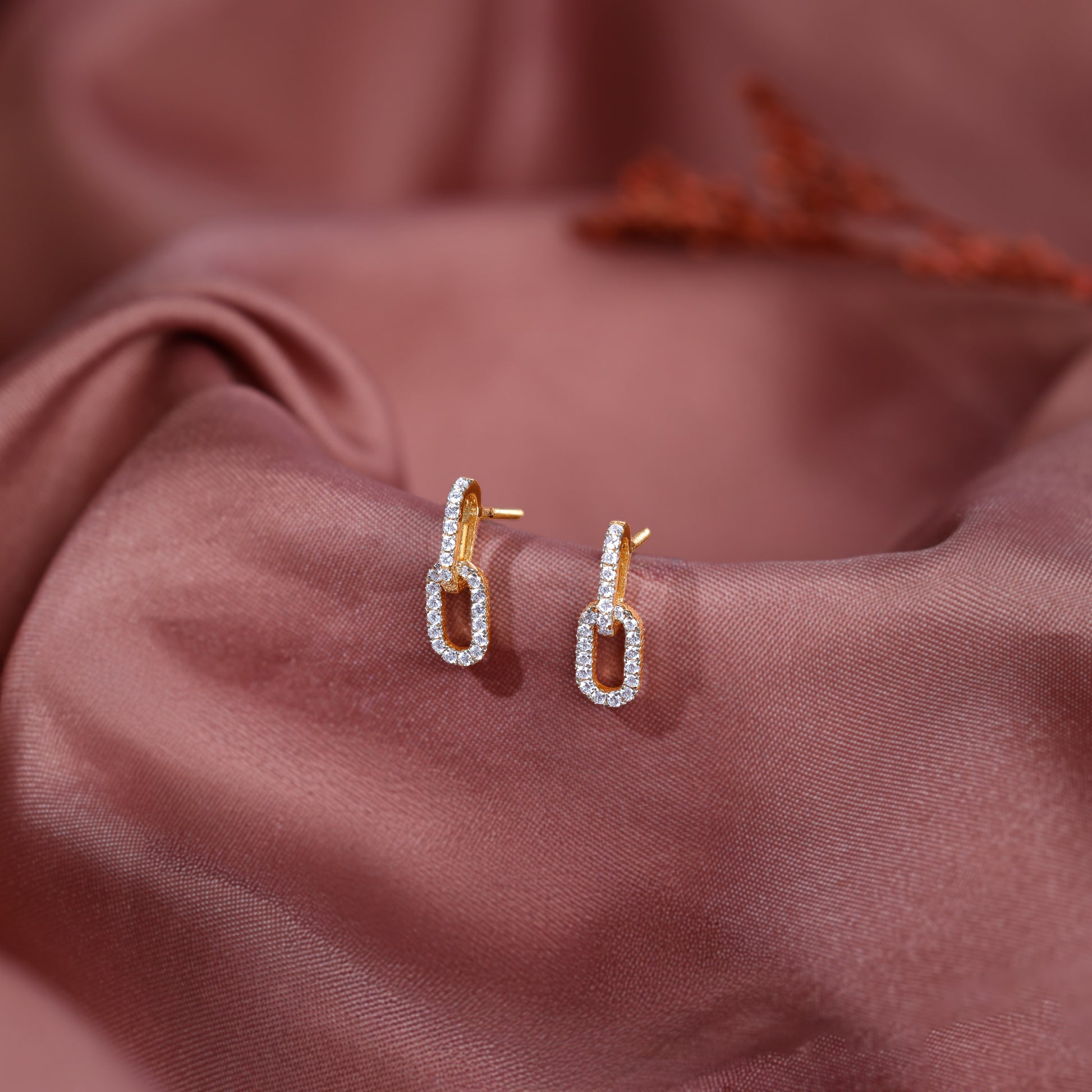 These earrings are inspired by the concept of unbreakable connection and modern fluidity. The design showcases two symmetrical links set with lab grown diamonds: one secured as the stud, the other hanging freely, creating a sophisticated drop. Try this stunning lab grown diamond jewellery from Heer By GIVA today.