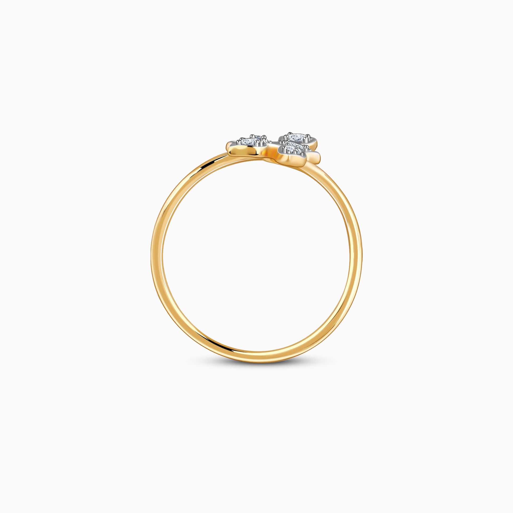 This nature inspired pure gold ring for women features a leaf shape. Each shape is studded with lab grown diamonds for a touch of organic elegance.