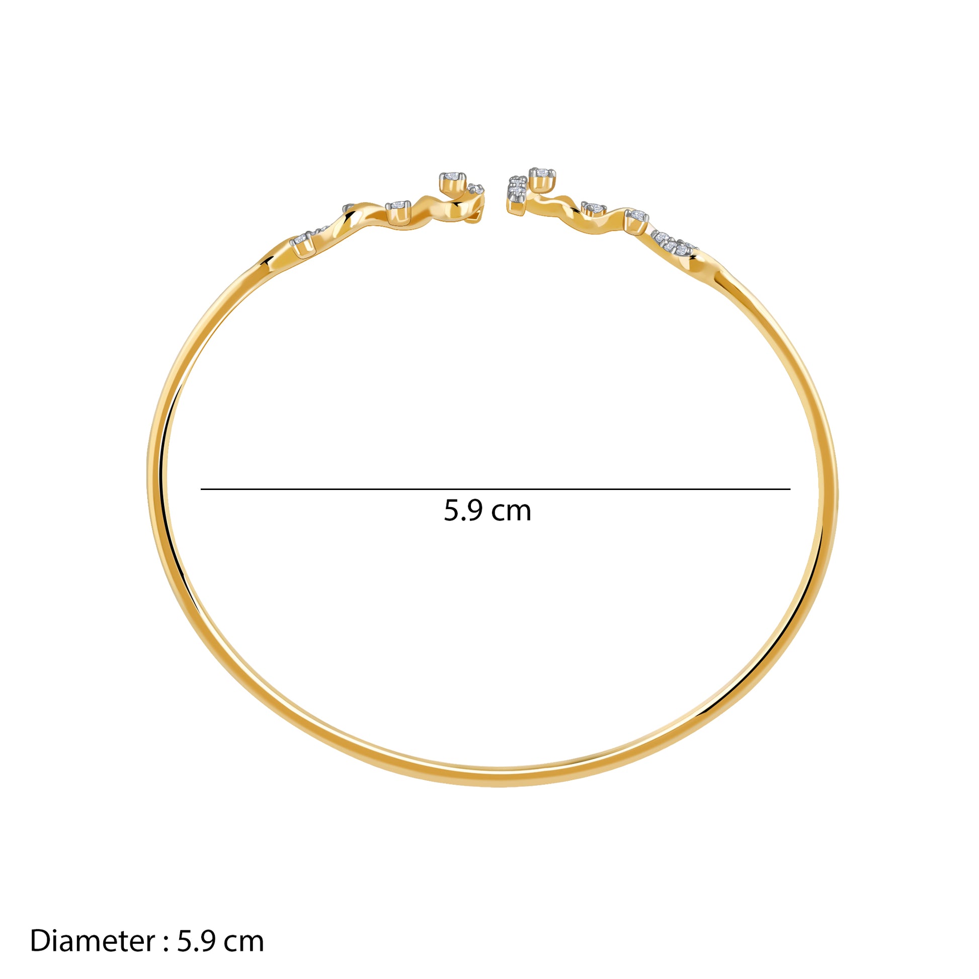 This pure gold bangle for women features an open cuff design, with the ends stylised, wavy pattern, reminiscent of a heartbeat or a flowing line. Lab grown diamonds further accentuate the unique contemporary design.