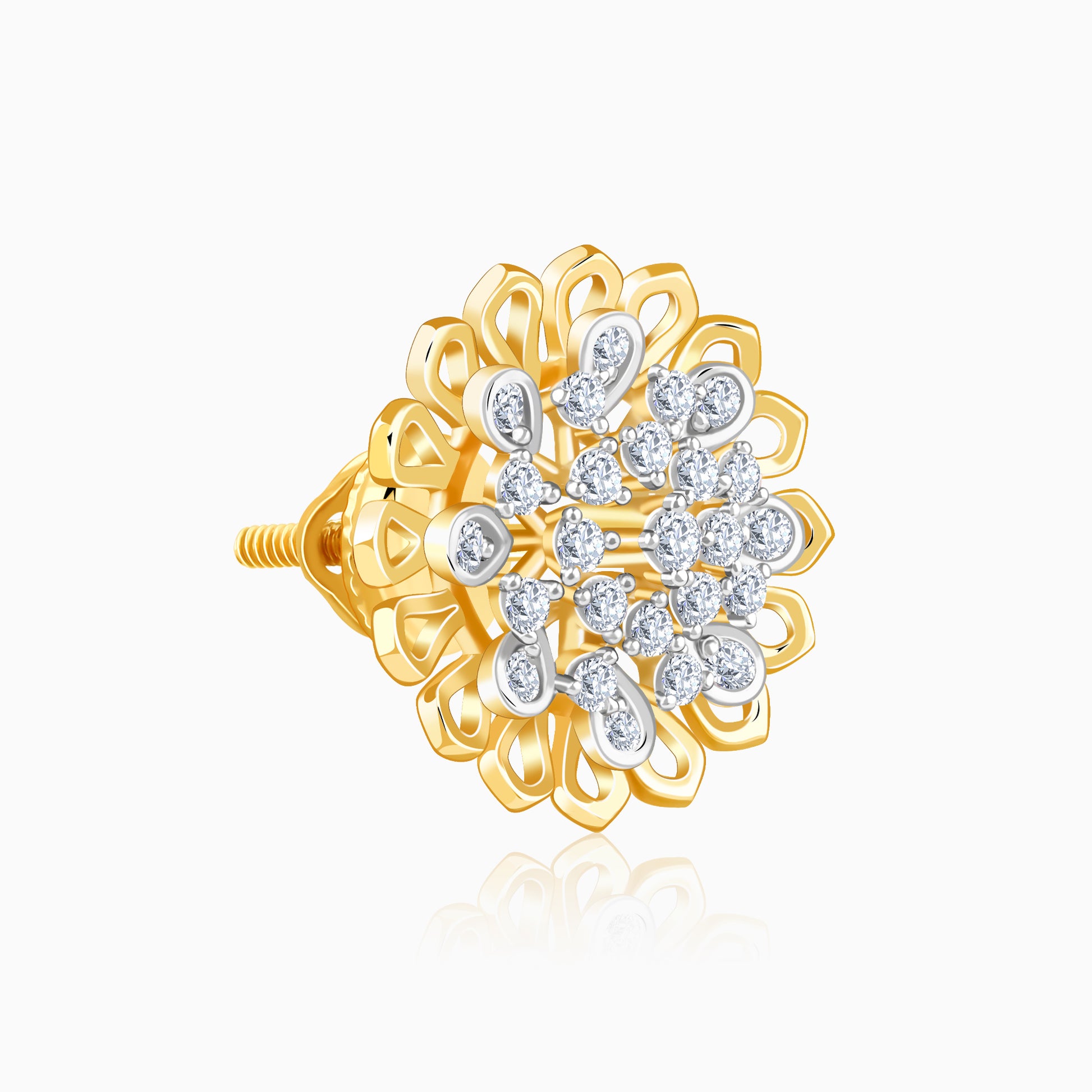 Gold Daisy Halo Lab Grown Diamond Stud Earrings