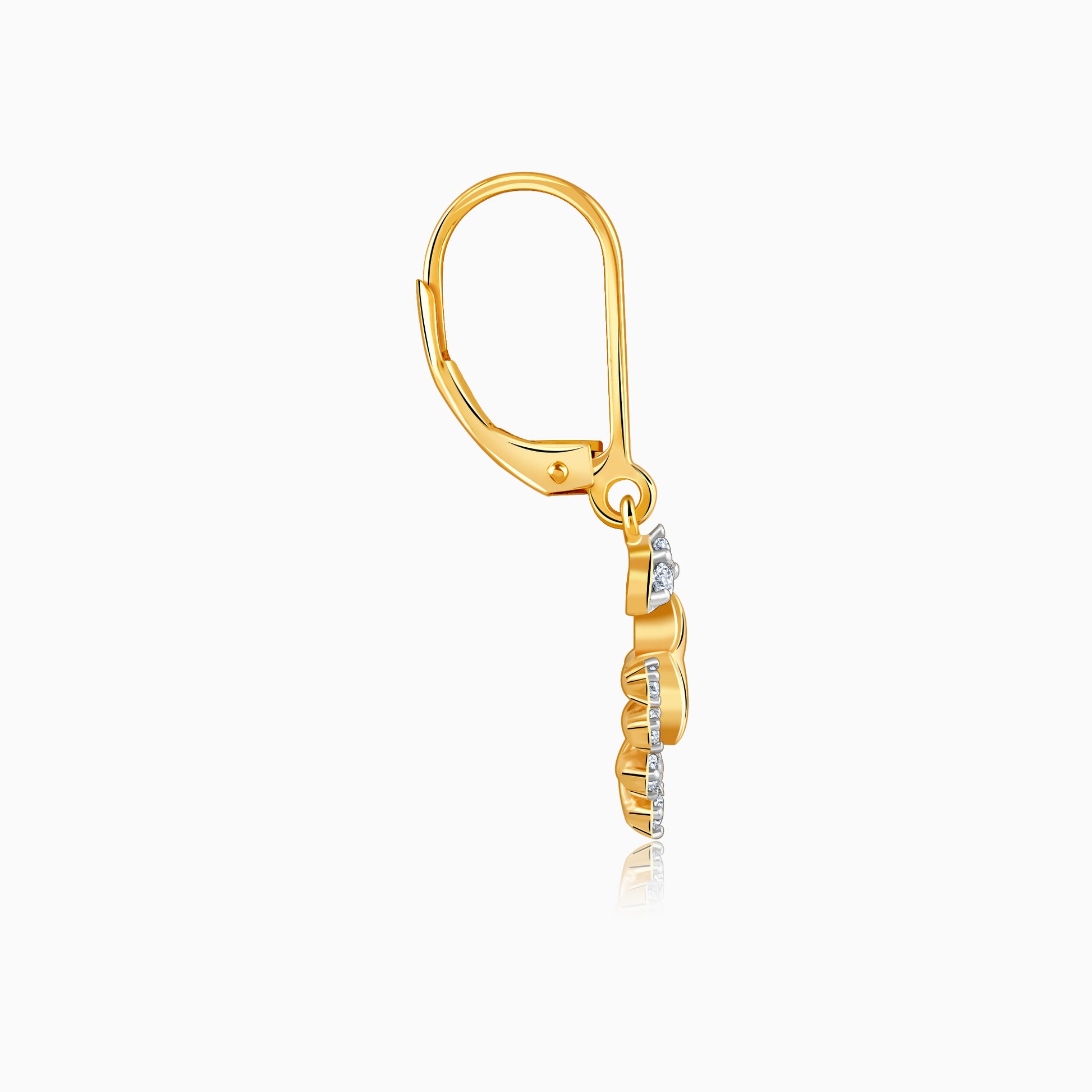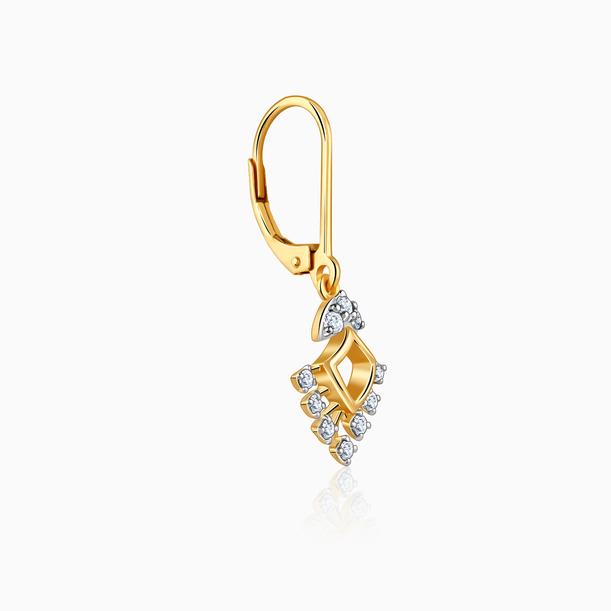 These pure gold earrings feature a fan-shaped arrangement with a central frame designed as a key, studded with lab-grown diamonds.