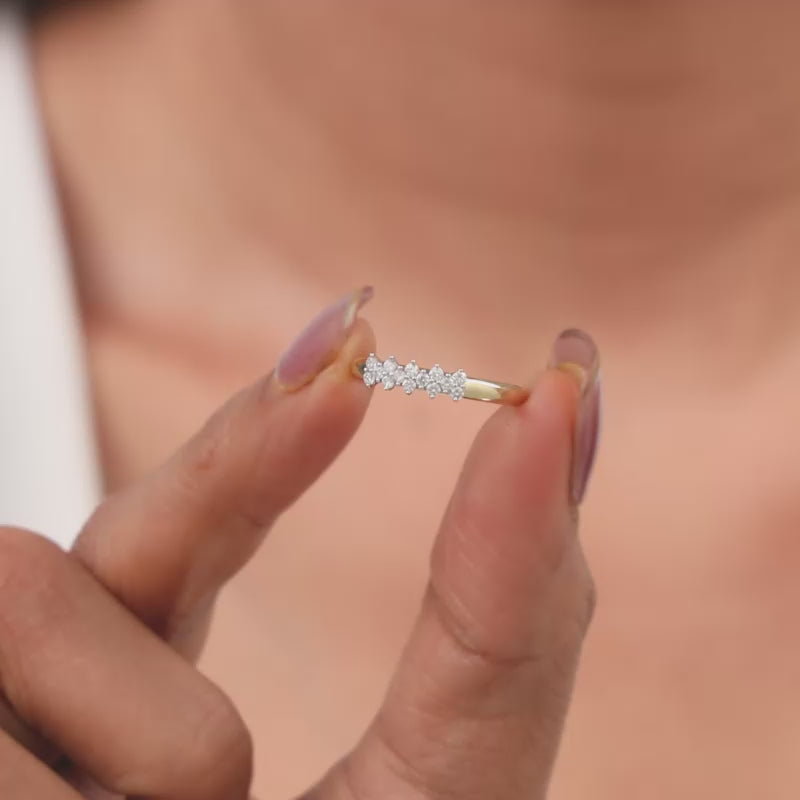 For the woman who dances to her own rhythm, this ring captures the joyful sparkle of life's spontaneous moments. This gold ring for women features an eclectic line of individually set lab grown diamonds, playfully arranged in a prong-set "tiara" or "burst" style. Try the exquisite lab grown diamond jewellery from Heer By GIVA today.