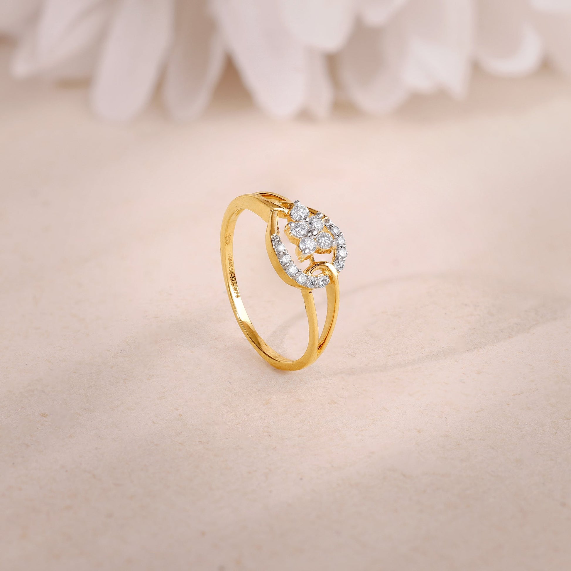 This gold ring for women features a floral cluster of sparkling lab grown diamonds set within a pear shaped frame. Its elegant split shank design increases the brilliance, making it a timeless piece of grace and charm.