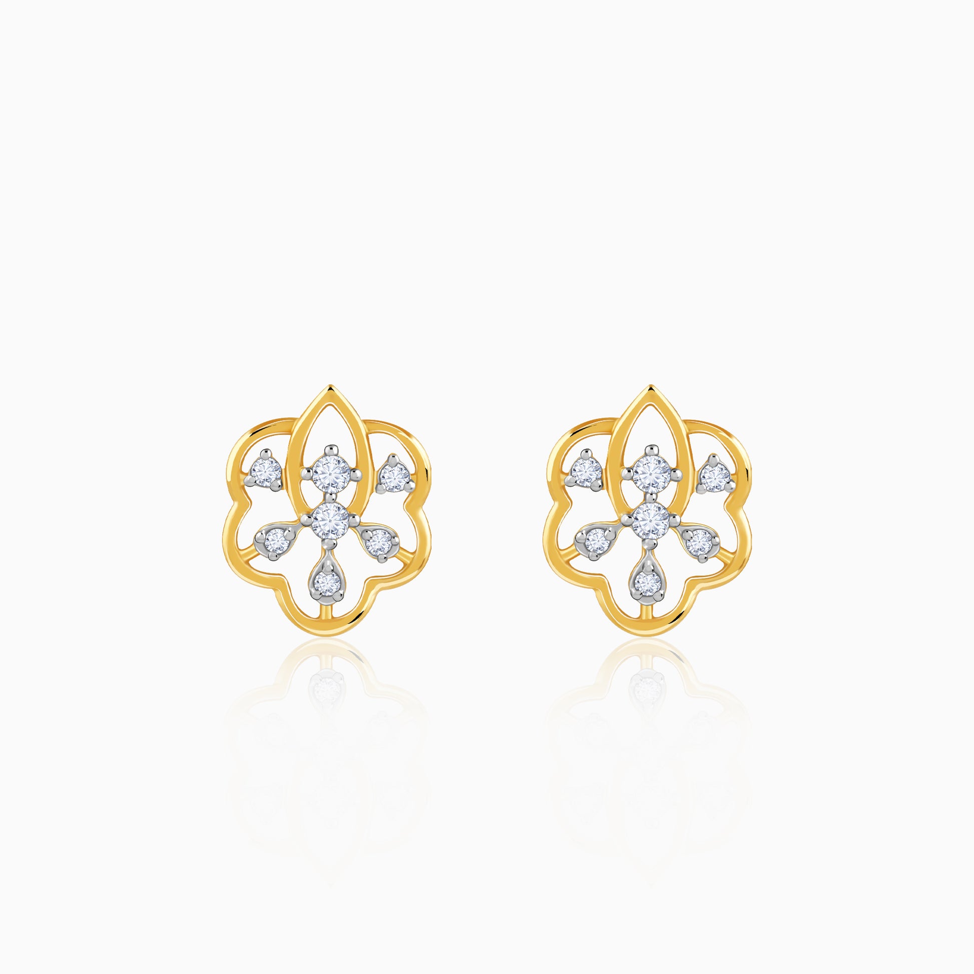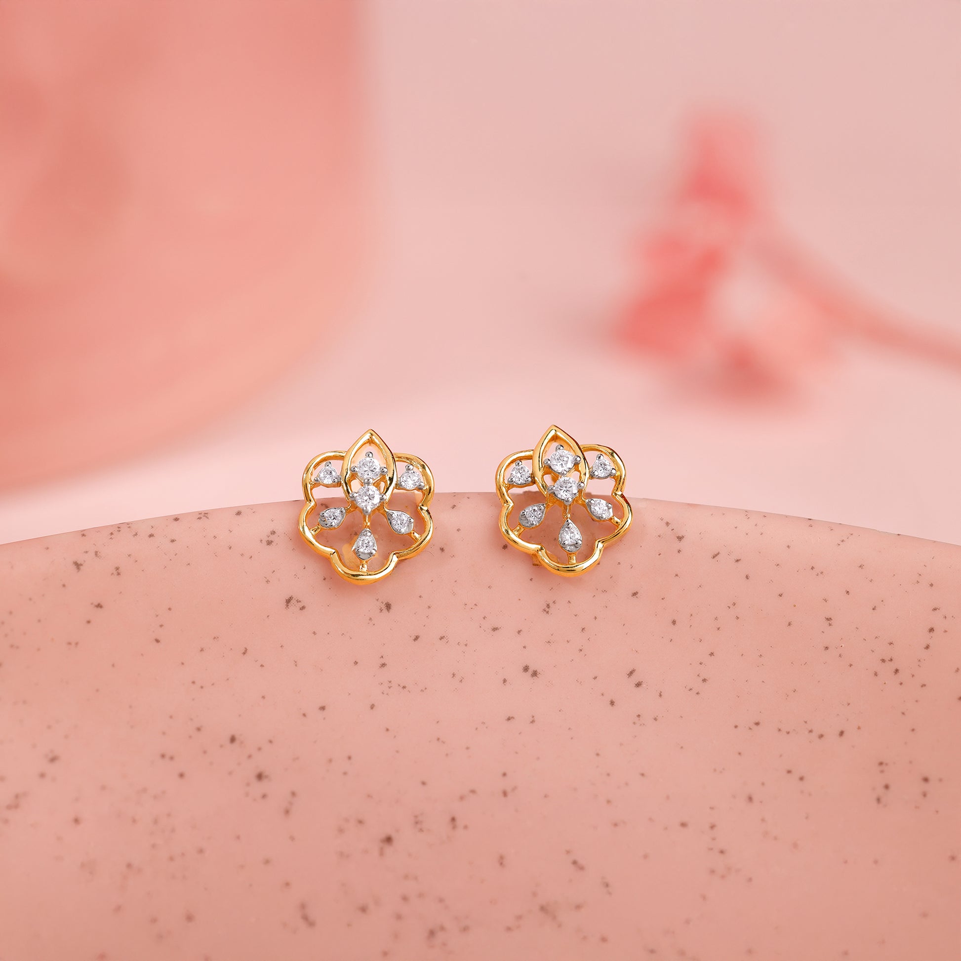 Capturing the tranquil elegance of a dew-kissed bloom, these gold earrings are an ode to the simple, everlasting beauty of nature's perfect design. These gold stud earrings feature a graceful open-work floral silhouette where brilliant lab grown diamonds are paved gracefully. Try the exquisite lab grown diamond jewellery from Heer By GIVA today.
