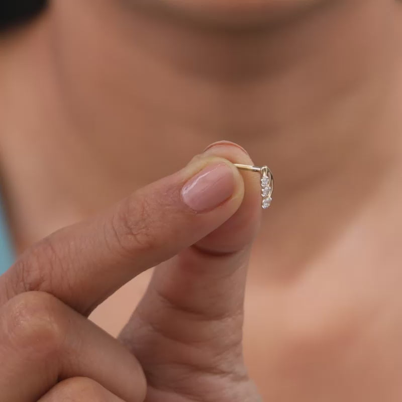 Inspired by movement and grace, these gold earrings for women feature three slender strands of gold, each tipped with a radiant lab grown diamond. A modern ode to fluid elegance, they shimmer with every turn. Try the exquisite lab grown diamond jewellery from Heer By GIVA today.