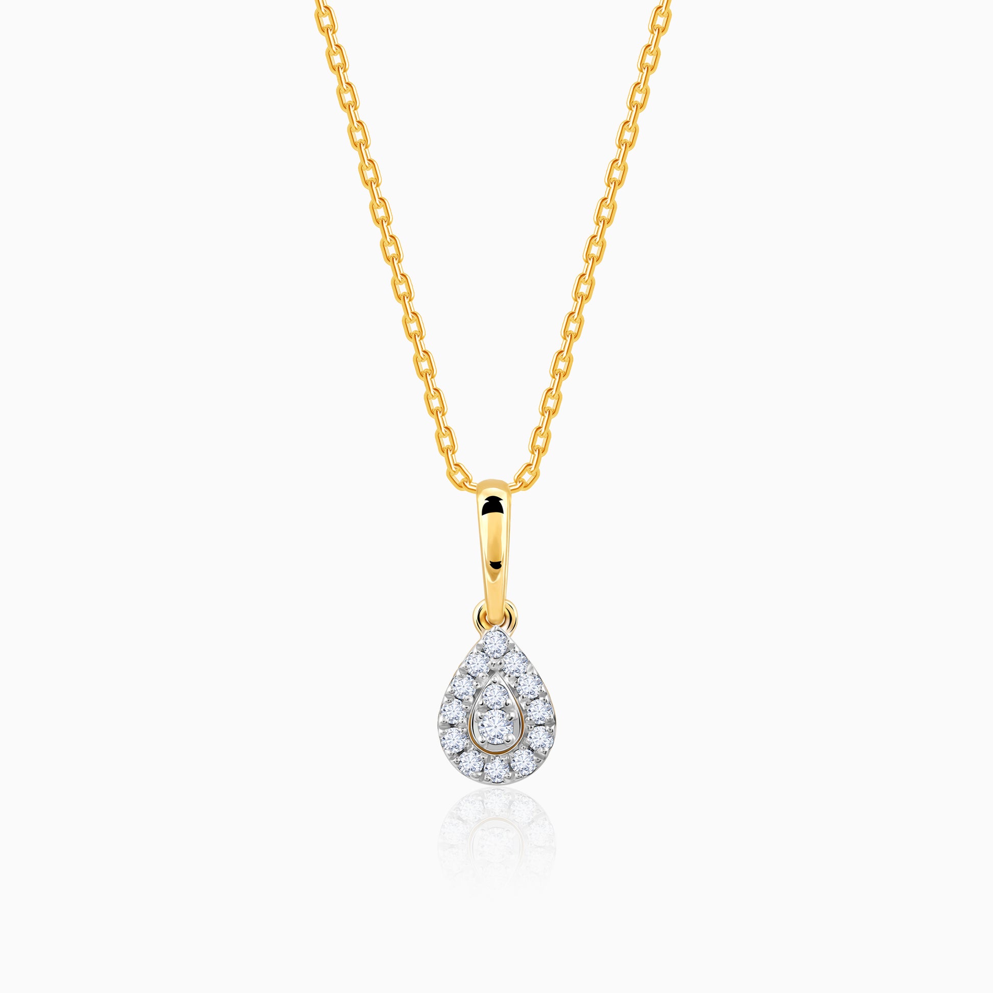 This pure gold pendant for women features a teardrop shape studded with rows of lab-grown diamonds.