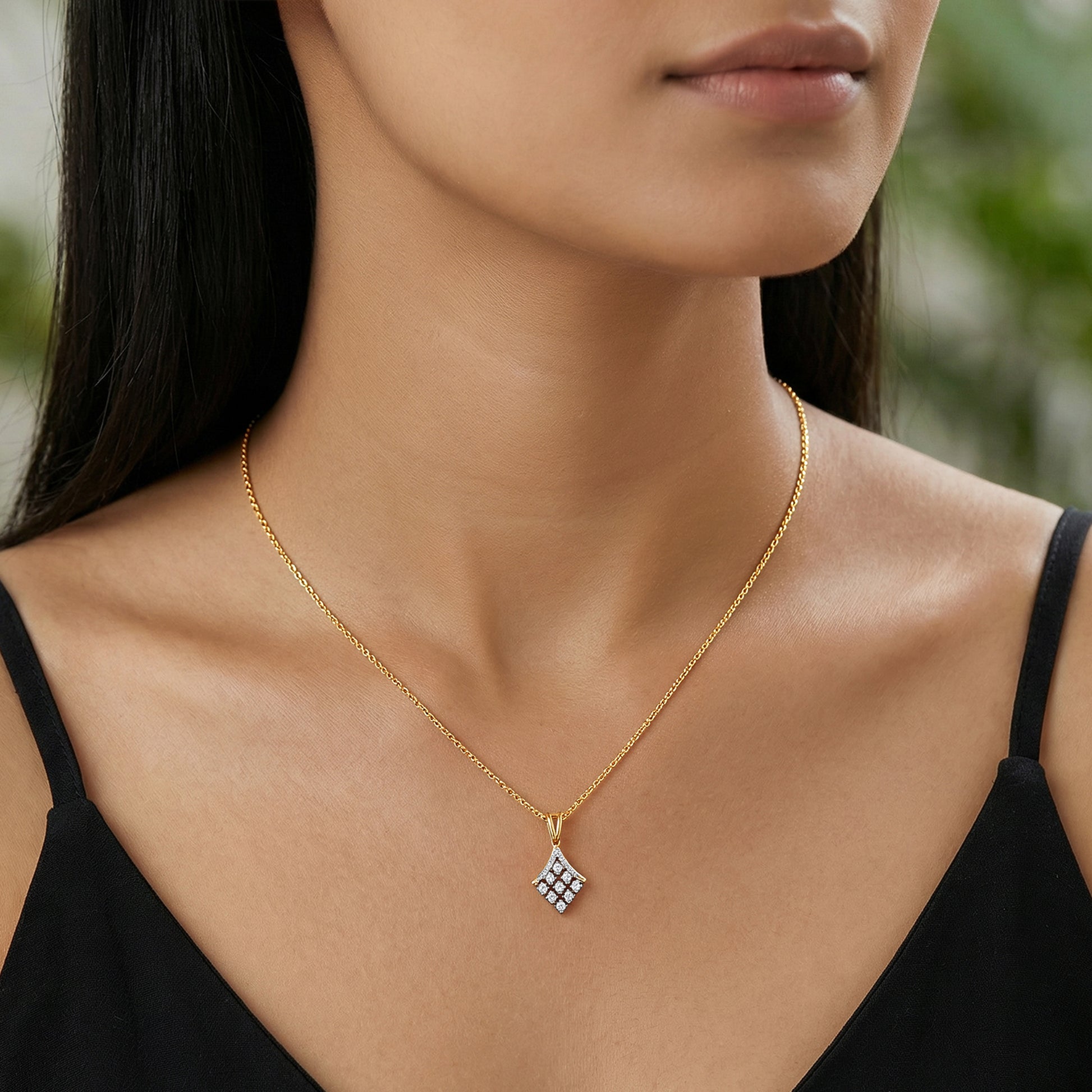 Designed for the woman who values balance, strength and modern elegance, this pendant brings clean geometry into everyday luxury. The rhombus shape in gold is set with lab grown diamonds, creating a confident statement with refined sparkle. Try the exquisite lab grown diamond jewellery from Heer By GIVA today.