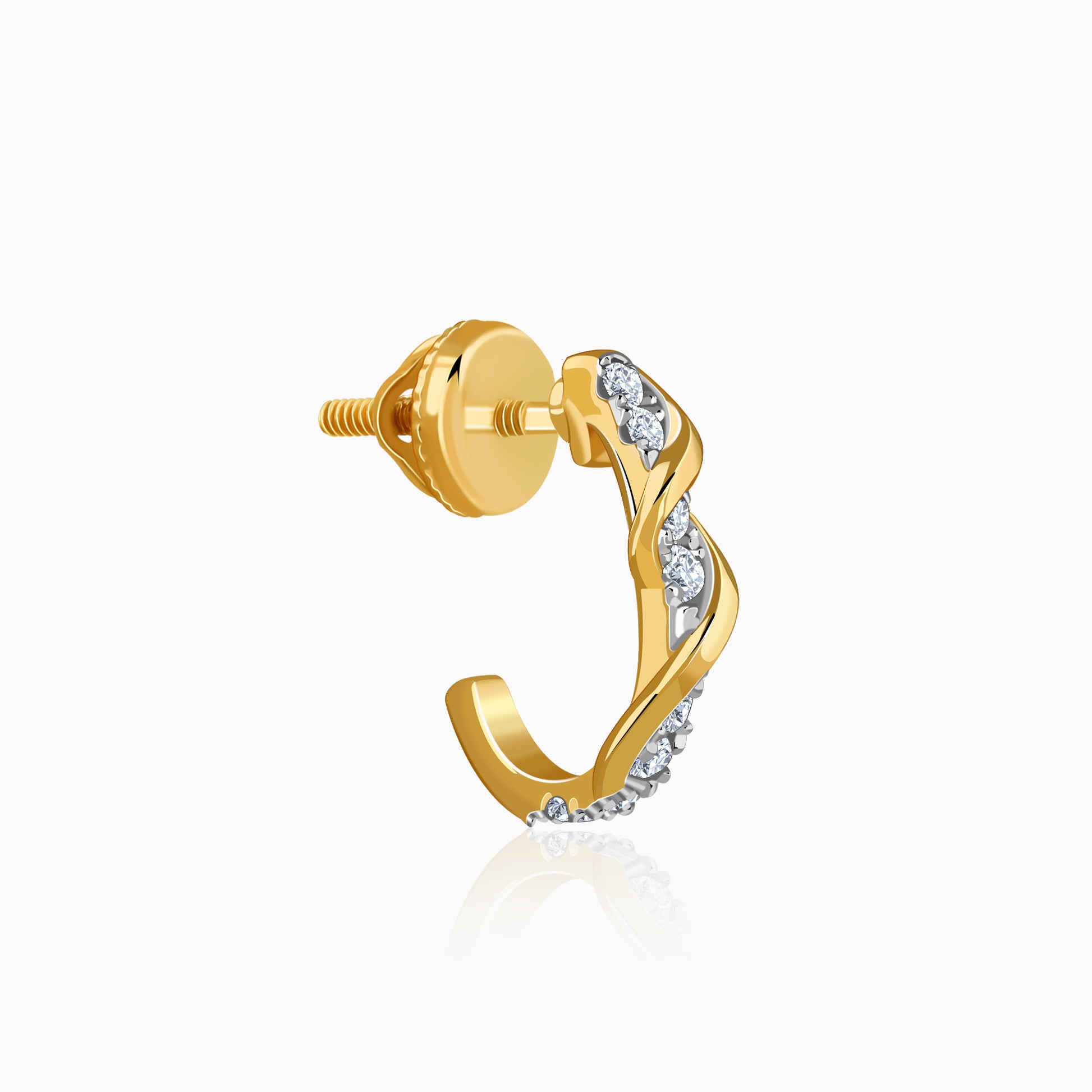 Inspired by movement and light, these gold earrings reinterpret the classic J hoop with a sculptural twist. A flowing gold band curves around a radiant strand of lab grown diamonds, creating a sense of rhythm and depth. Try the exquisite lab grown diamond jewellery from Heer By GIVA today.