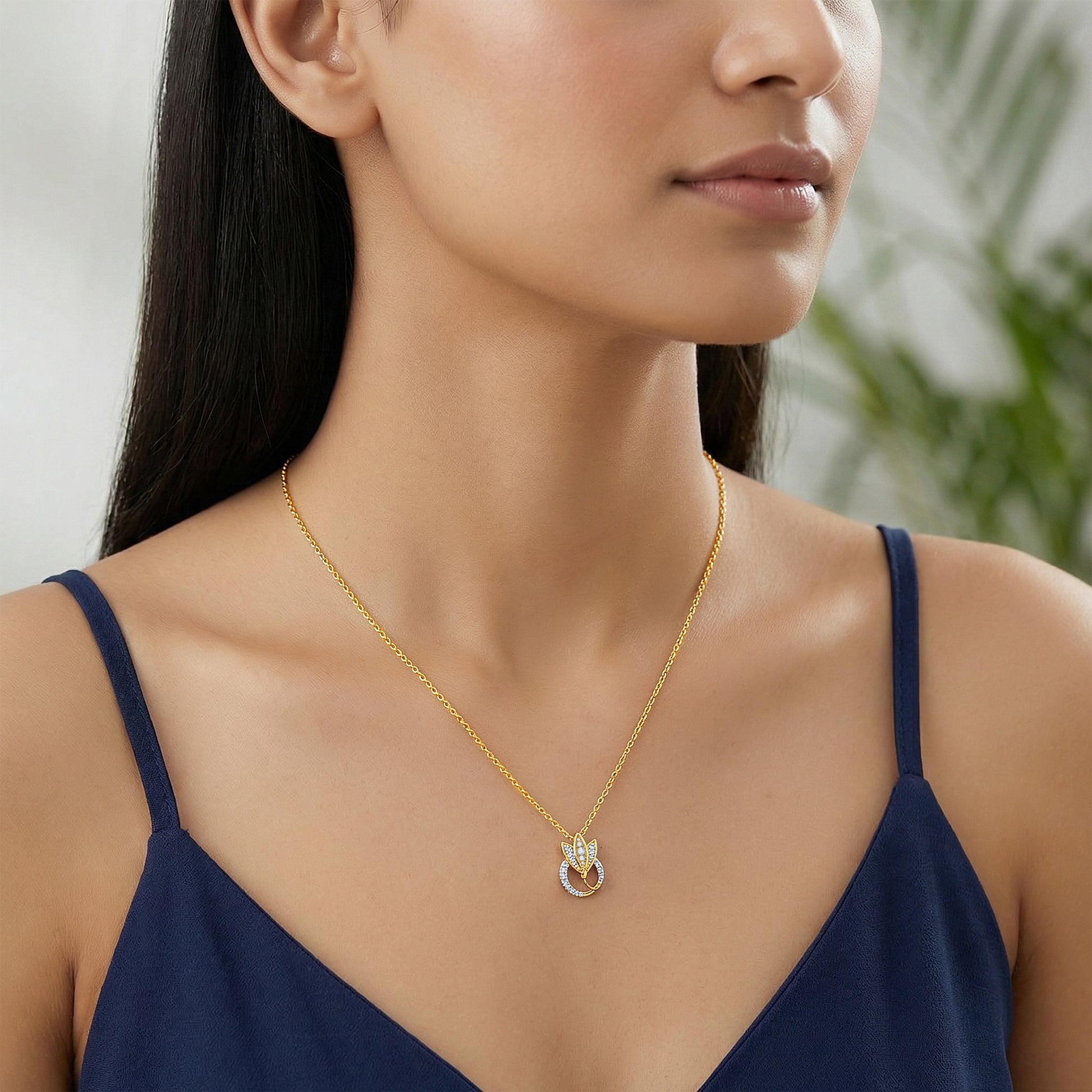 She is serene, optimistic, and drawn to symbols of growth and renewal. This gold pendant for women features a lotus emerging from a circle, studded with lab grown diamonds, representing beauty, balance, and new beginnings. Try the exquisite lab grown diamond jewellery from Heer By GIVA today.
