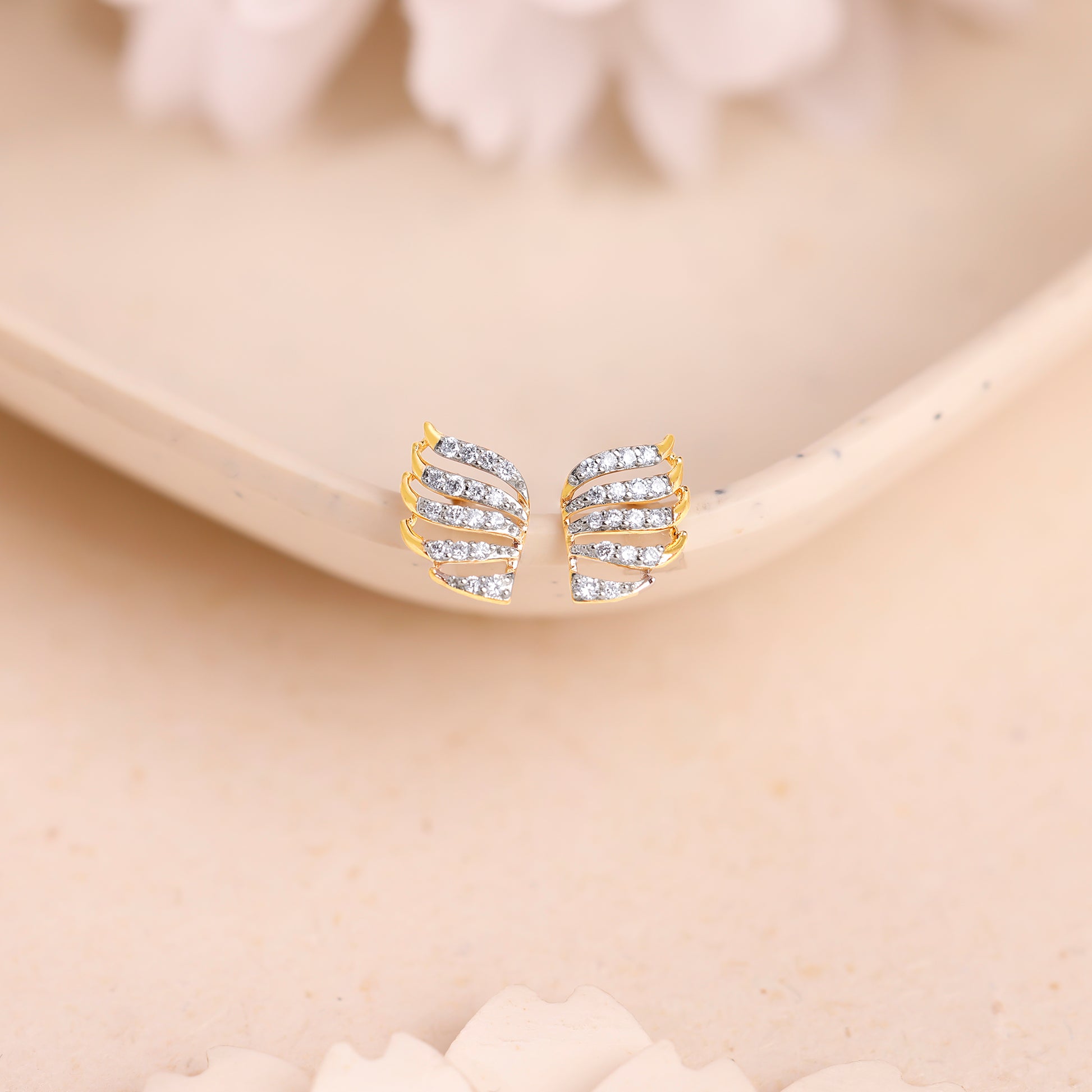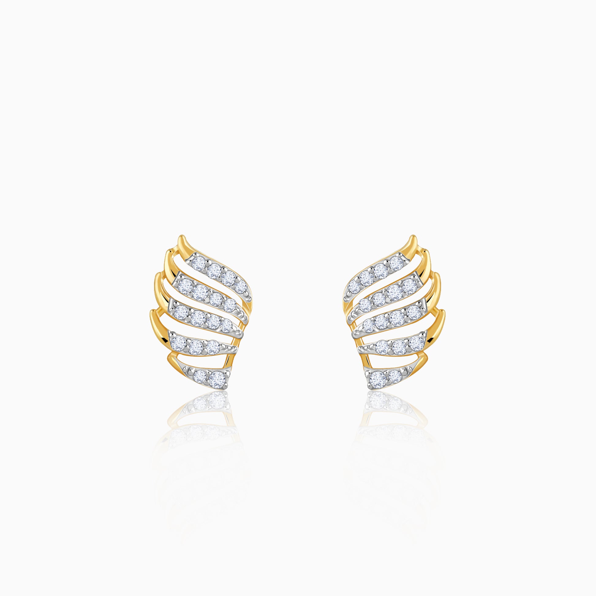 Modern sculpture meets magnificent sparkle, embodying elegant abstraction where metal and light flow together in perfect harmony. These gold earrings for women feature a sleek, conical silhouette with swirling lines of lab grown diamonds expertly pave-set across the surface. Try the exquisite lab grown diamond jewellery from Heer By GIVA today.