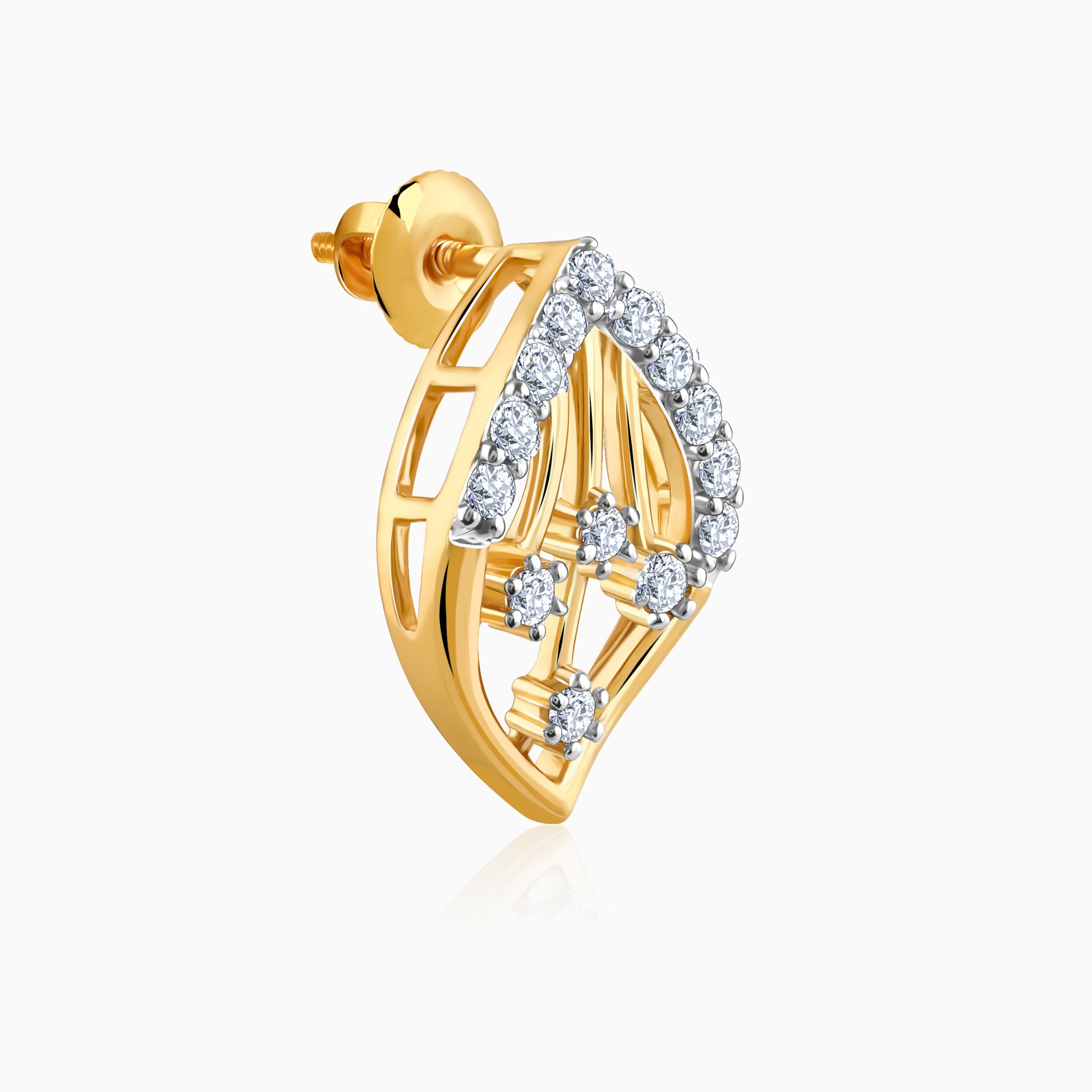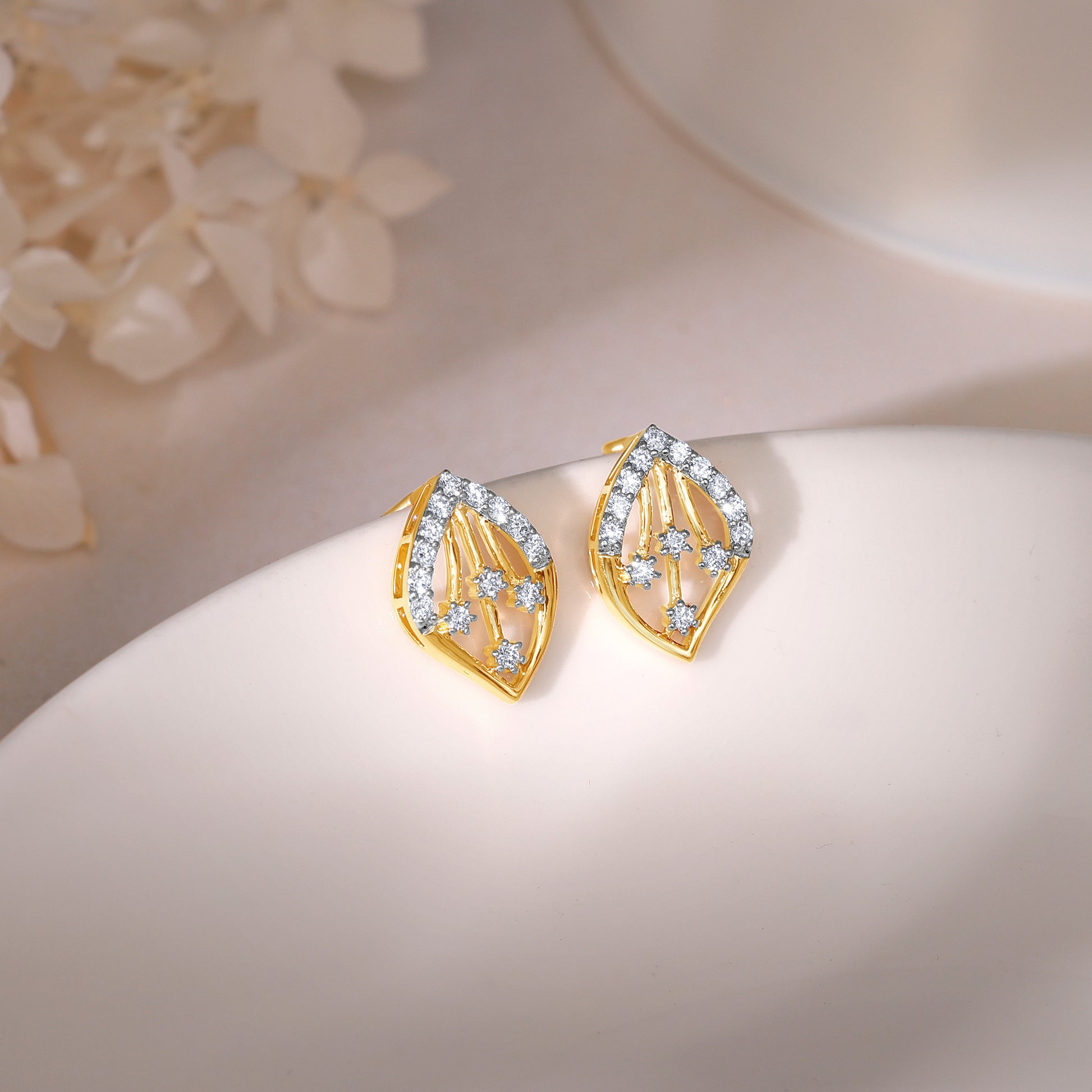 These gold earrings feature a leaf motif studded with lab-grown diamonds.