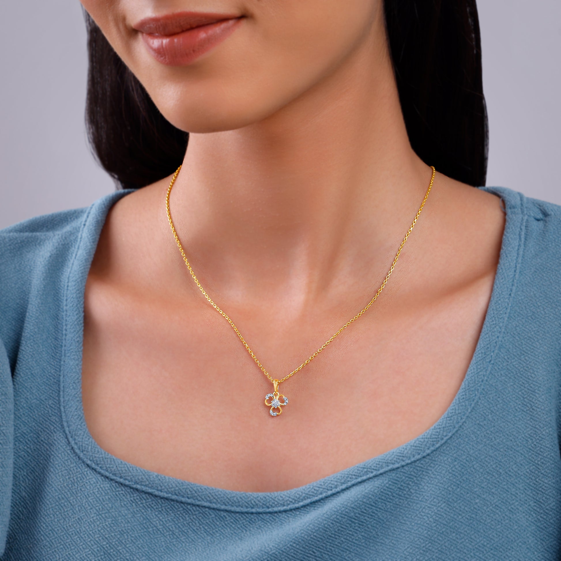 This three-petal pendant, set with sparkling lab grown diamonds, is for the confident woman who embraces elegance with ease. Its contemporary floral design adds a touch of sophistication to any outfit. Try the exquisite lab grown diamond jewellery from Heer By GIVA today.