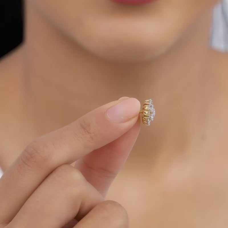 These pure gold earrings feature a floral motif studded with lab grown diamonds.