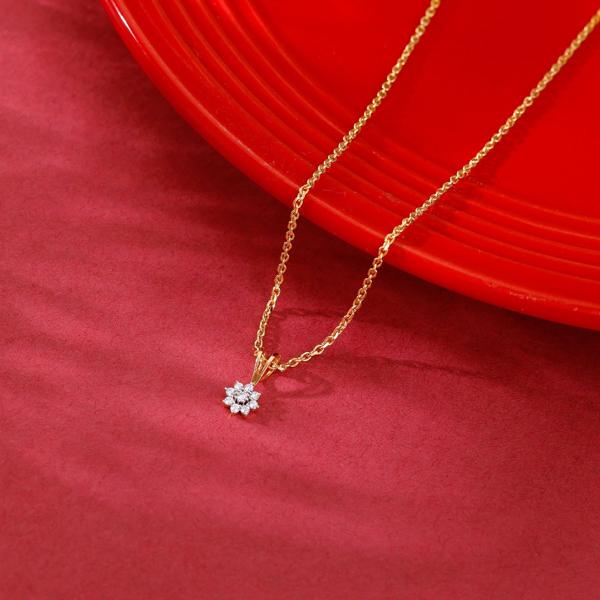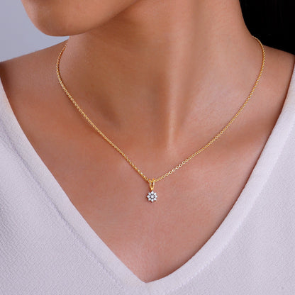 This gold pendant has a flower motif studded with lab-grown diamonds.