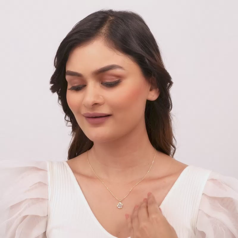 The Gold Floral Wheel Diamond Pendant draws inspiration from the positive feeling that makes us believe that nothing is impossible.