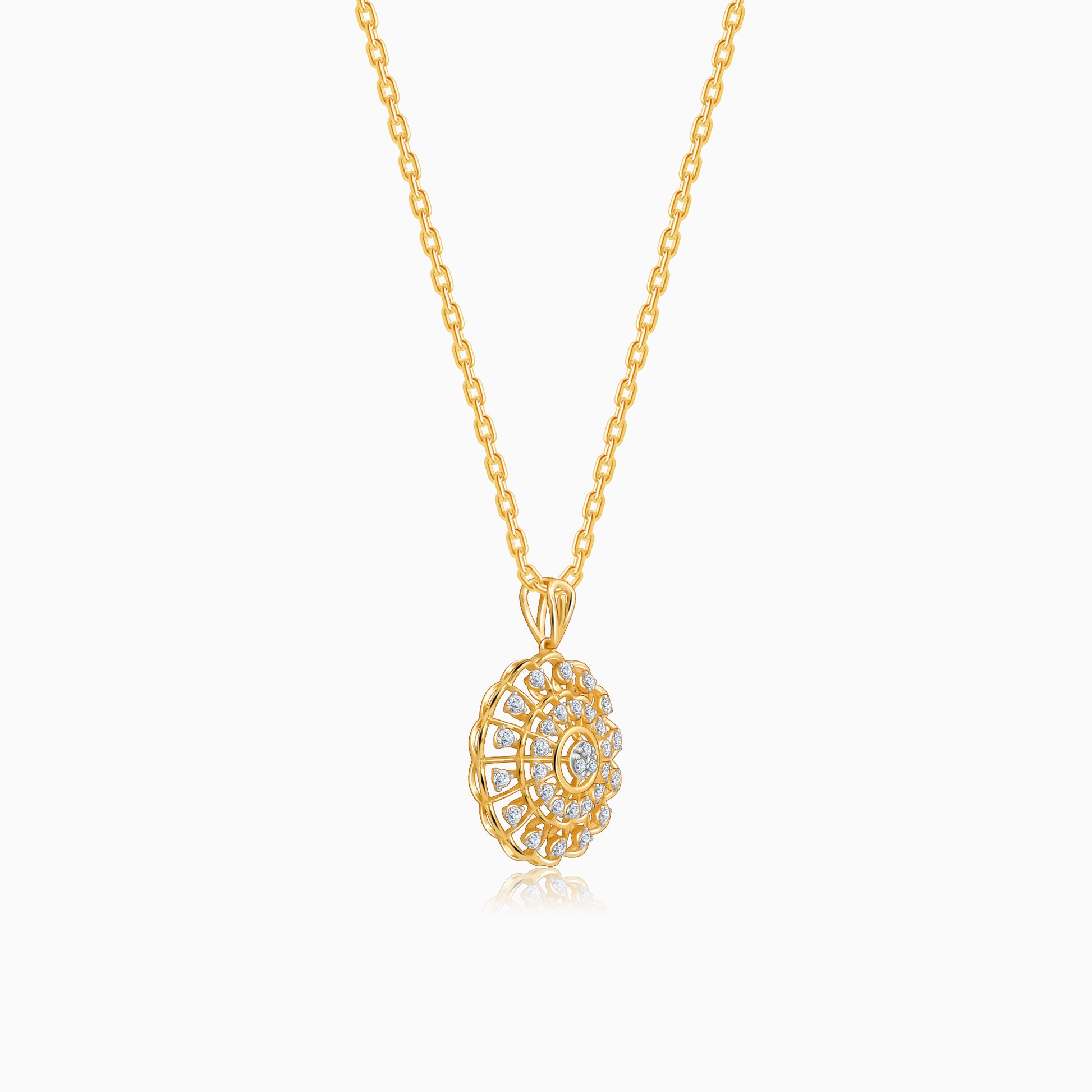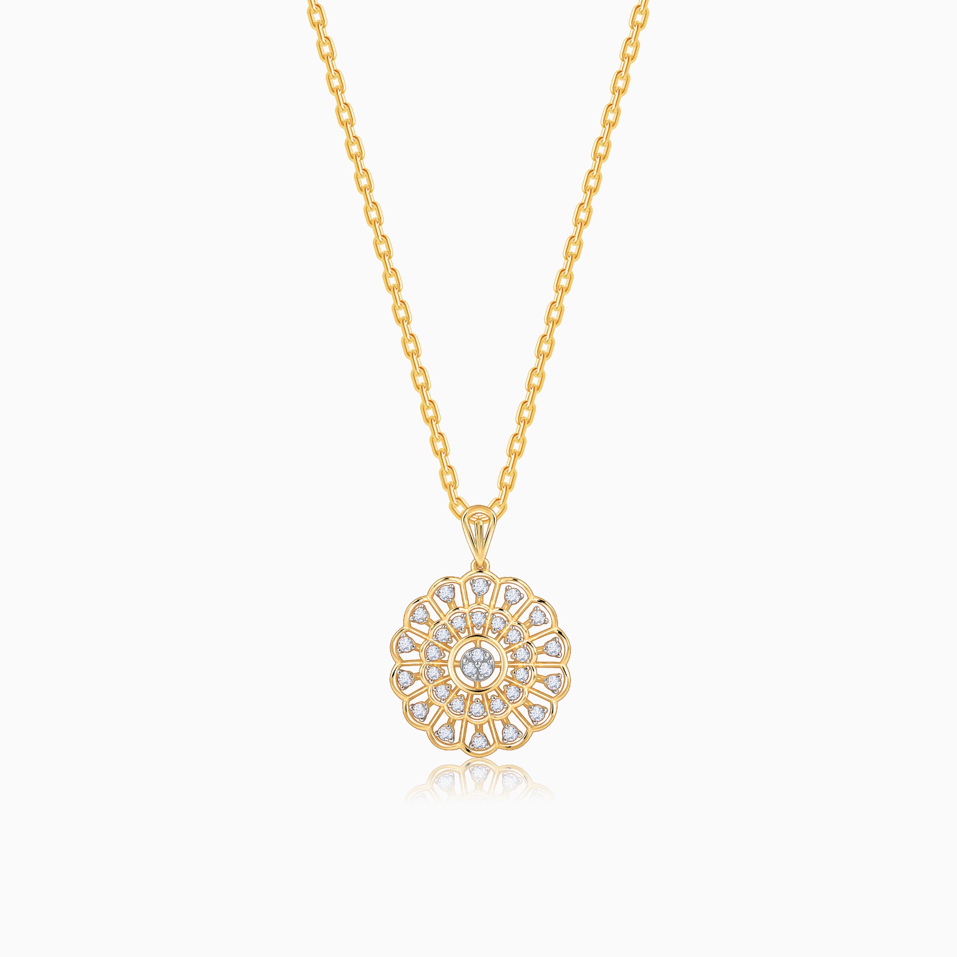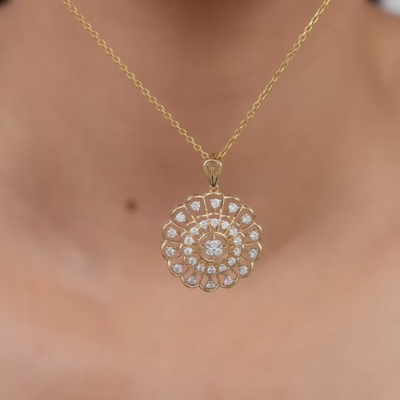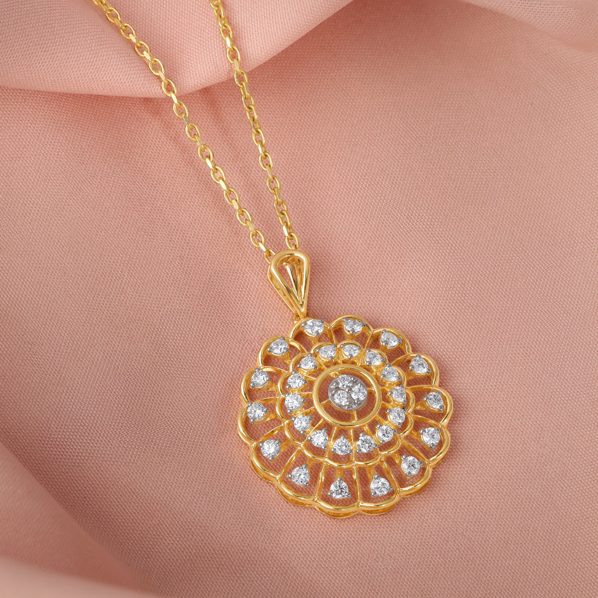This pure gold pendant features a flower design, studded with lab grown diamonds.