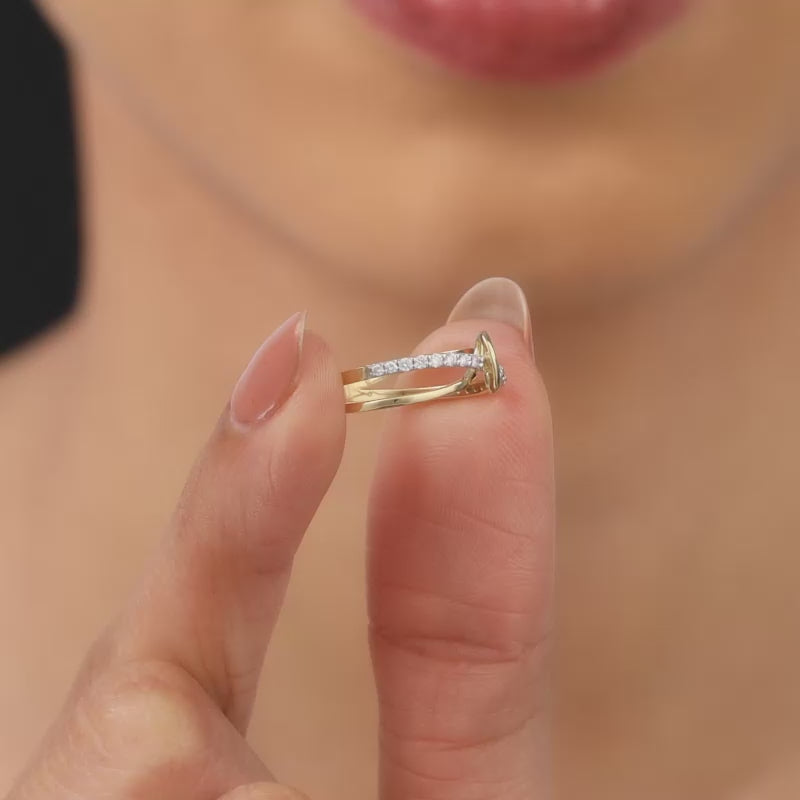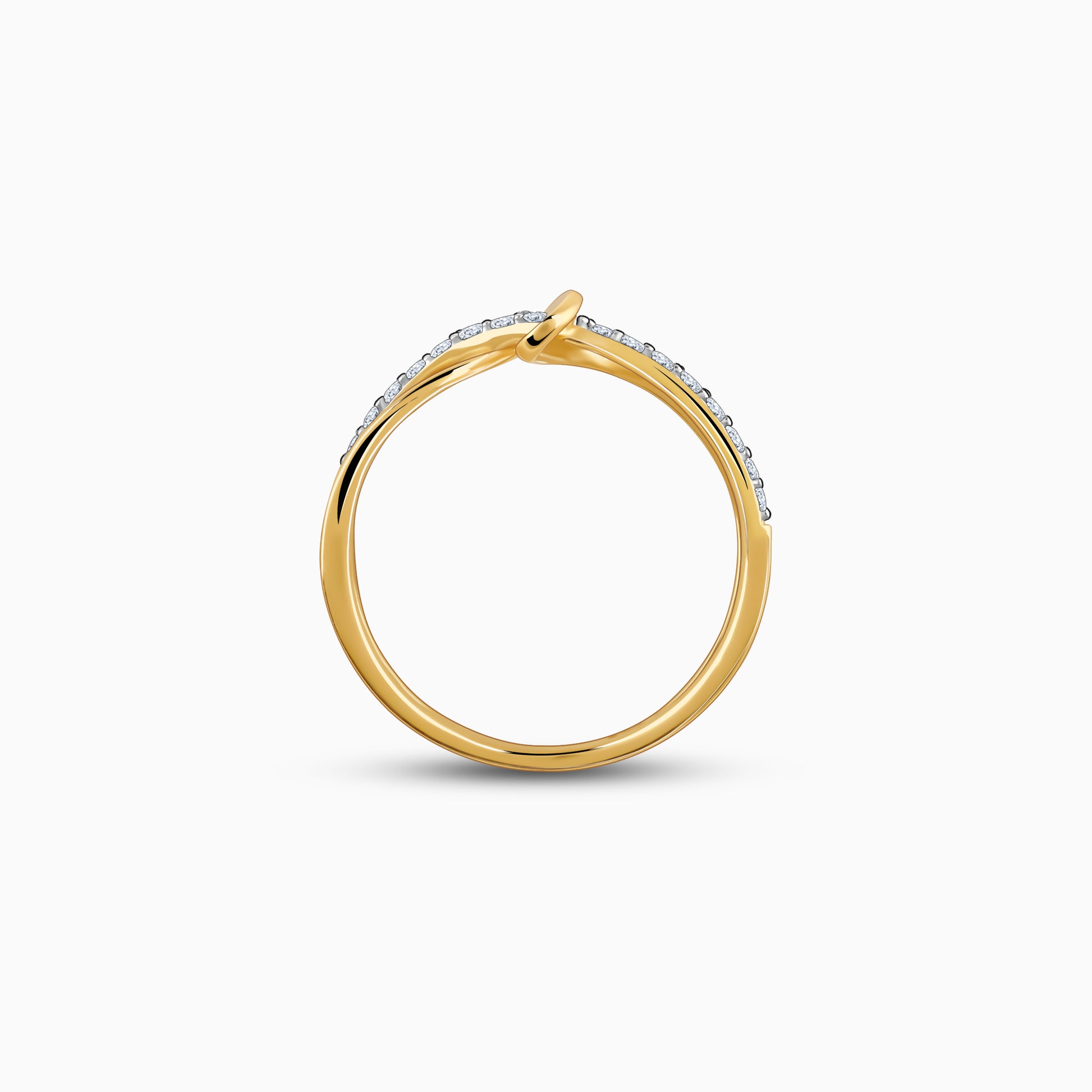 This pure gold ring features a knot design with one band embellished with a row of sparkling lab grown diamonds to create a stylish look.