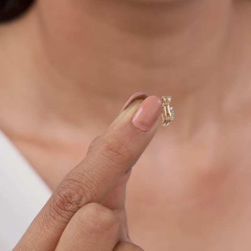 Inspired by nature’s frozen elegance, these gold earrings for women feature a graceful conch-shaped silhouette with a radiant snowflake motif at the centre. The arch above shimmers with diamonds, creating a symphony of light, luxury, and timeless charm. Try the exquisite lab grown diamond jewellery from Heer By GIVA today.