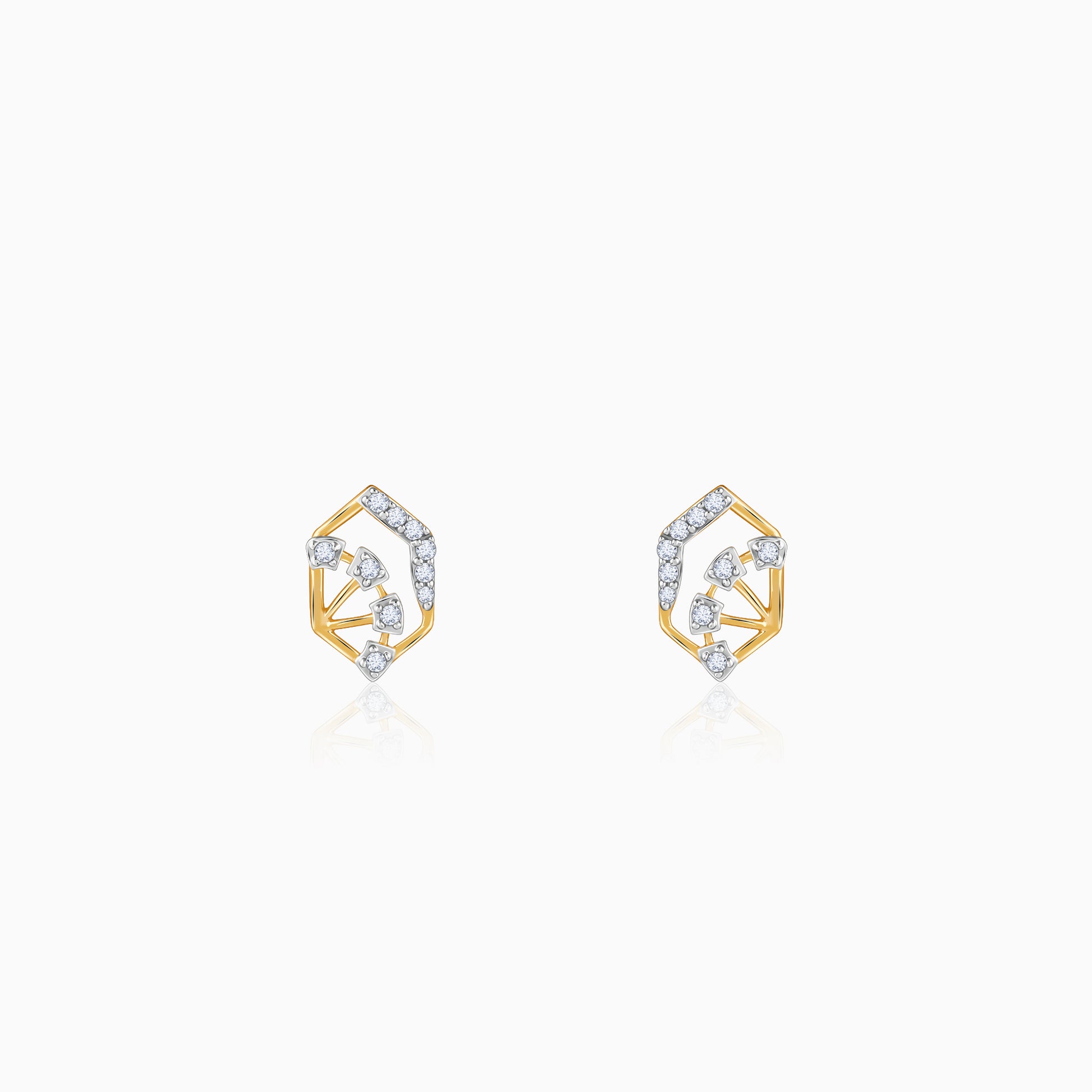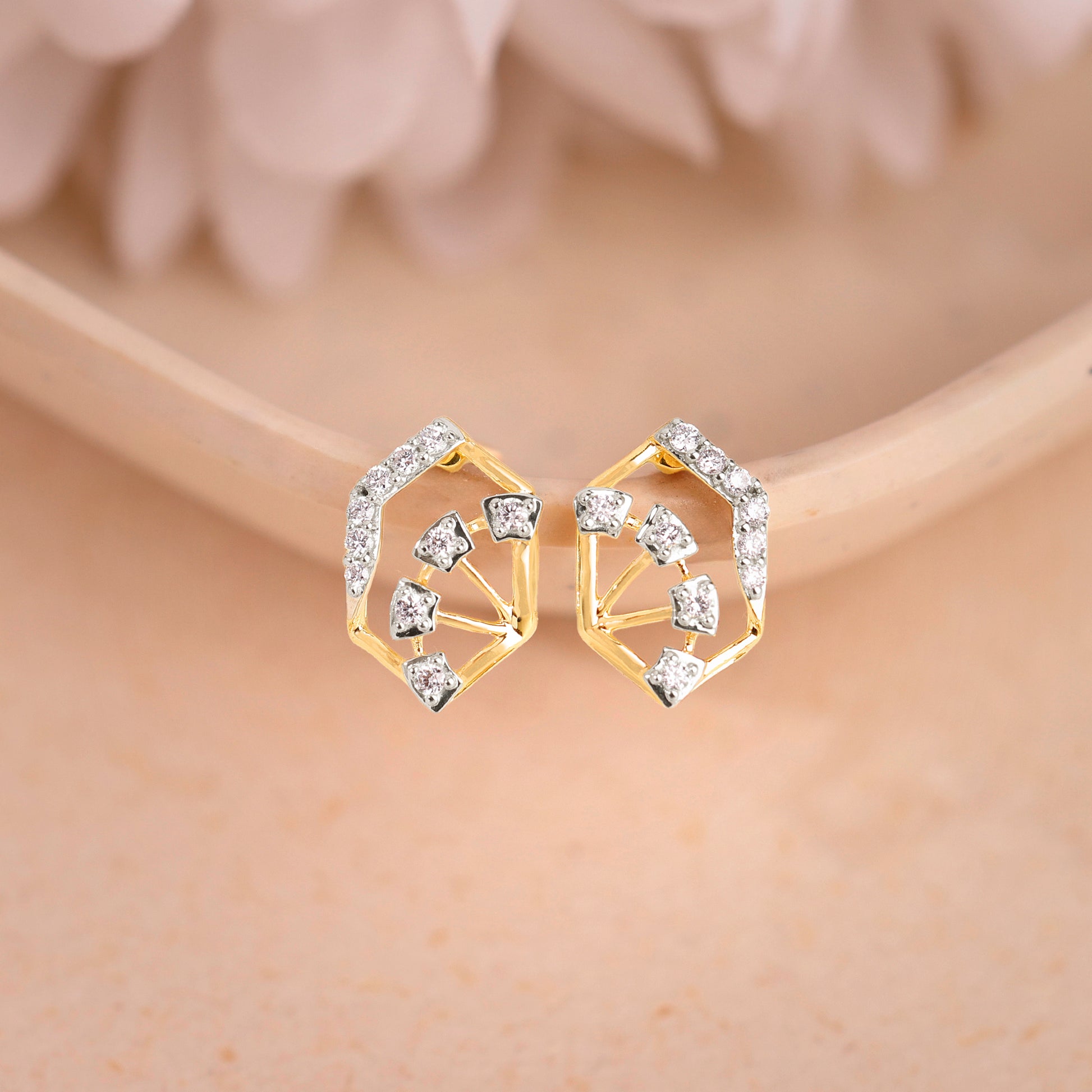Inspired by the clean lines of modern architecture, these studs capture the beauty of geometric symmetry set with pure 9K gold light. These gold stud earrings feature an open-work hexagonal frame paved with sparkling lab grown diamonds that border an intricate central cluster.The interior design showcases a floating, lab diamond accented star design. Try the exquisite lab grown diamond jewellery from Heer By GIVA today.