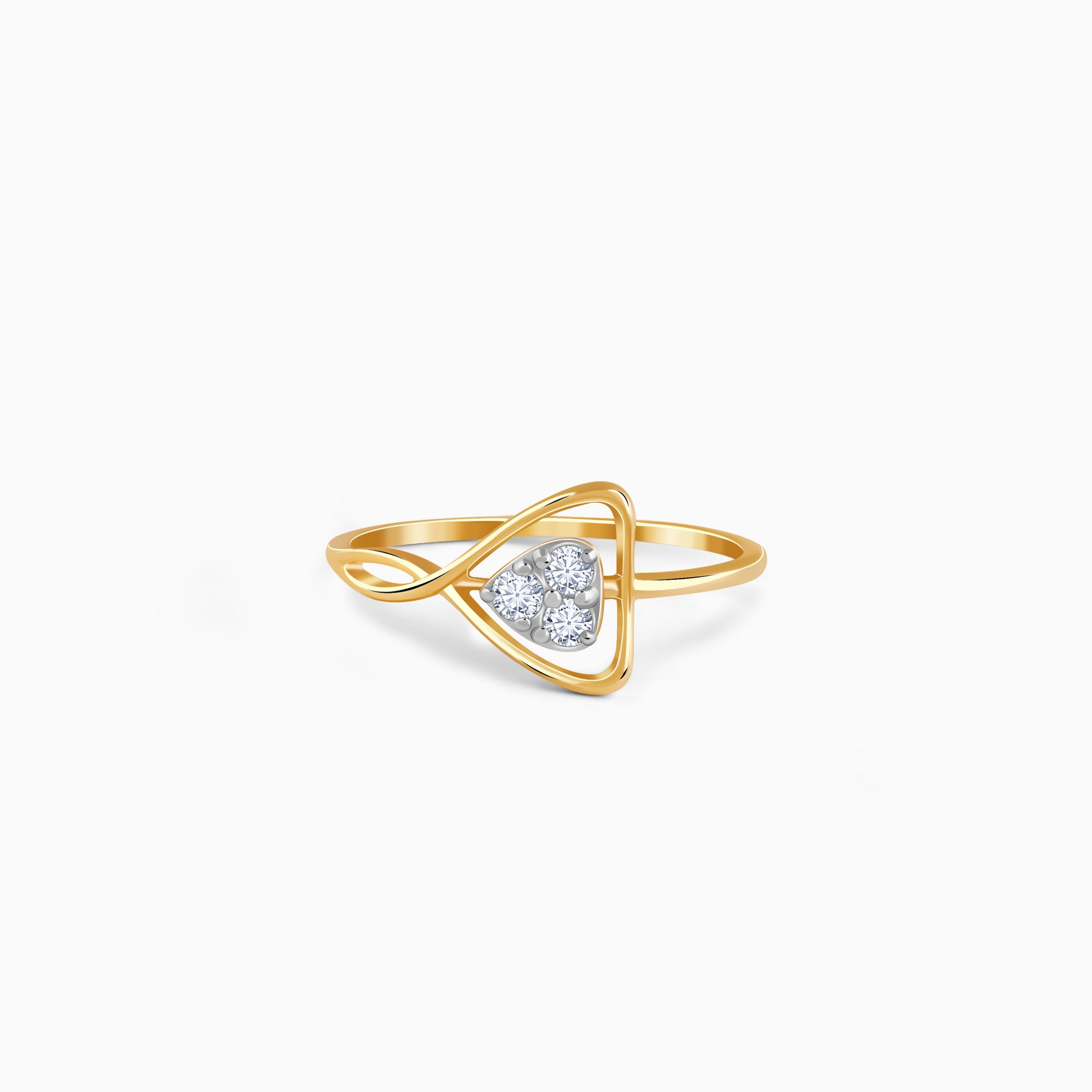 This gold ring features swirling bands that form a hollow oval at its centre, studded with lab grown diamonds that catch every flicker of light. Designed for the woman who embraces confidence and style. Try the exquisite lab grown diamond jewellery from Heer By GIVA today.