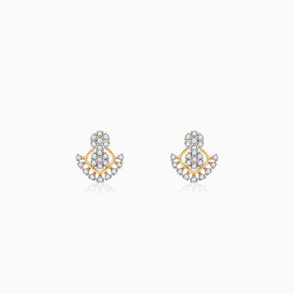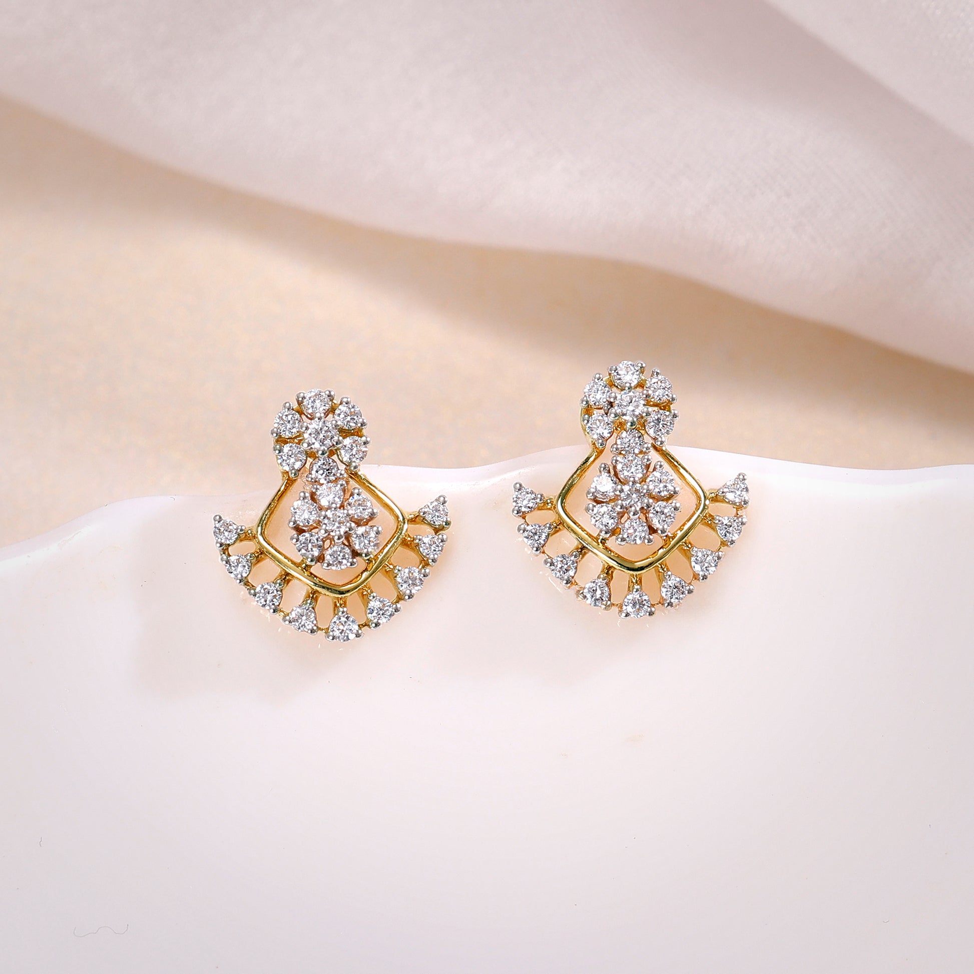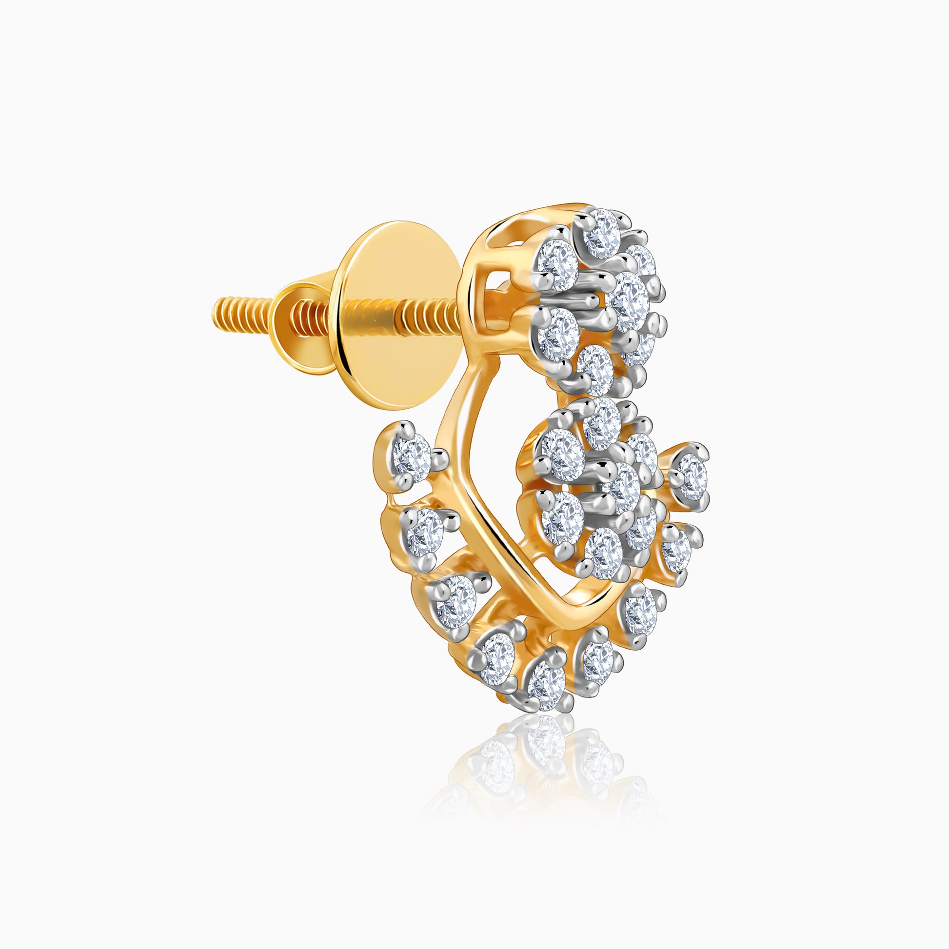 These womens pure gold earrings feature a traditional design, inspired by florals. The earrings are accentuated by lab grown diamonds.