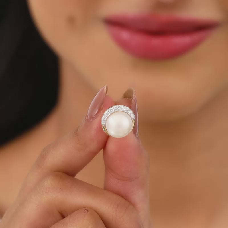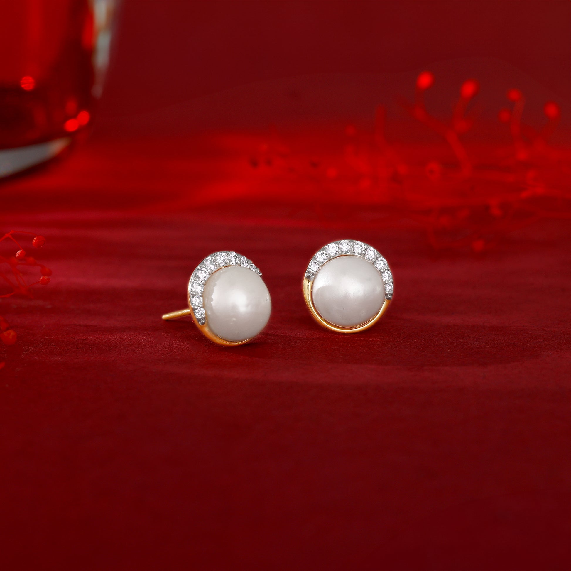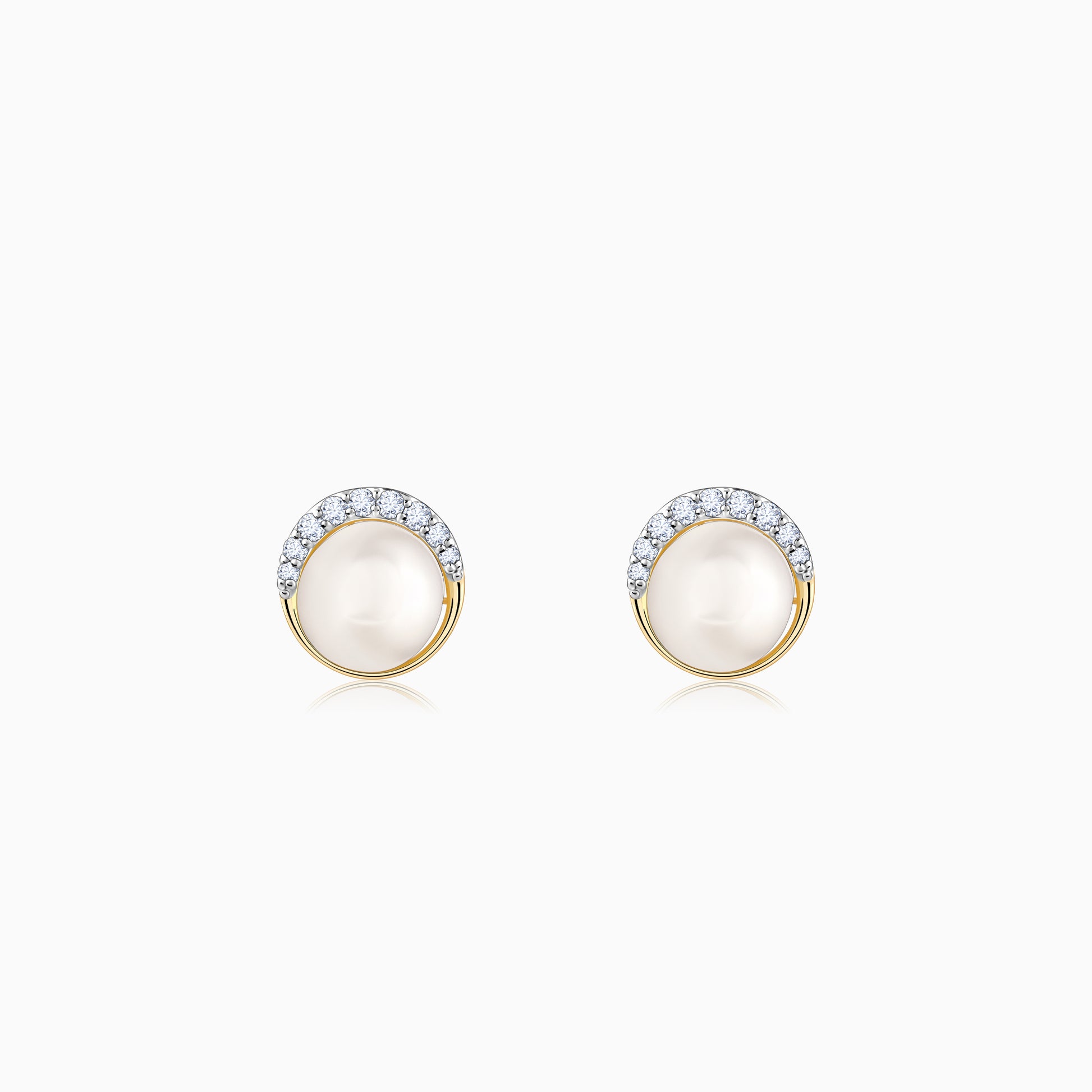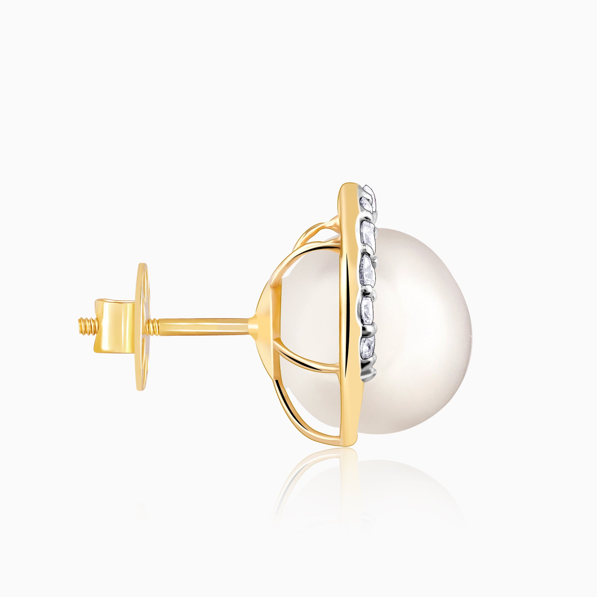 These gold earrings have a pearl motif with lab-grown diamonds.