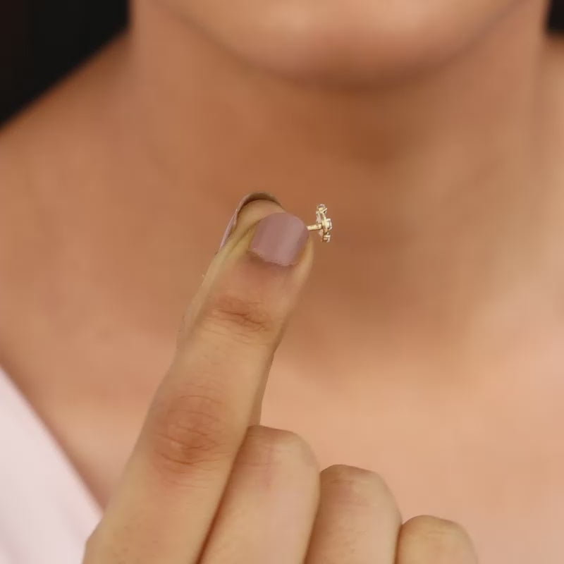 This pure gold nose pin features a half-floral motif with lab-grown diamonds.
