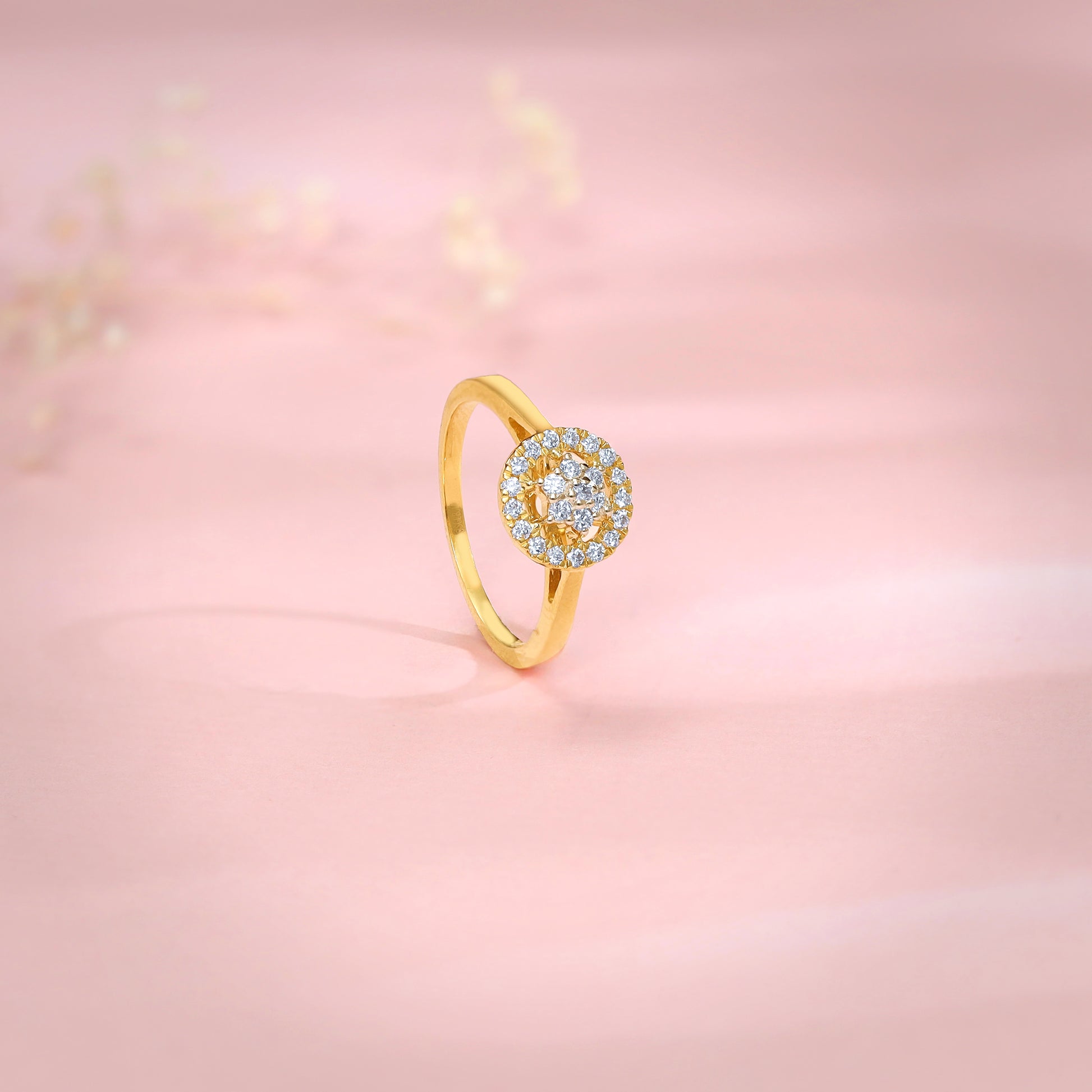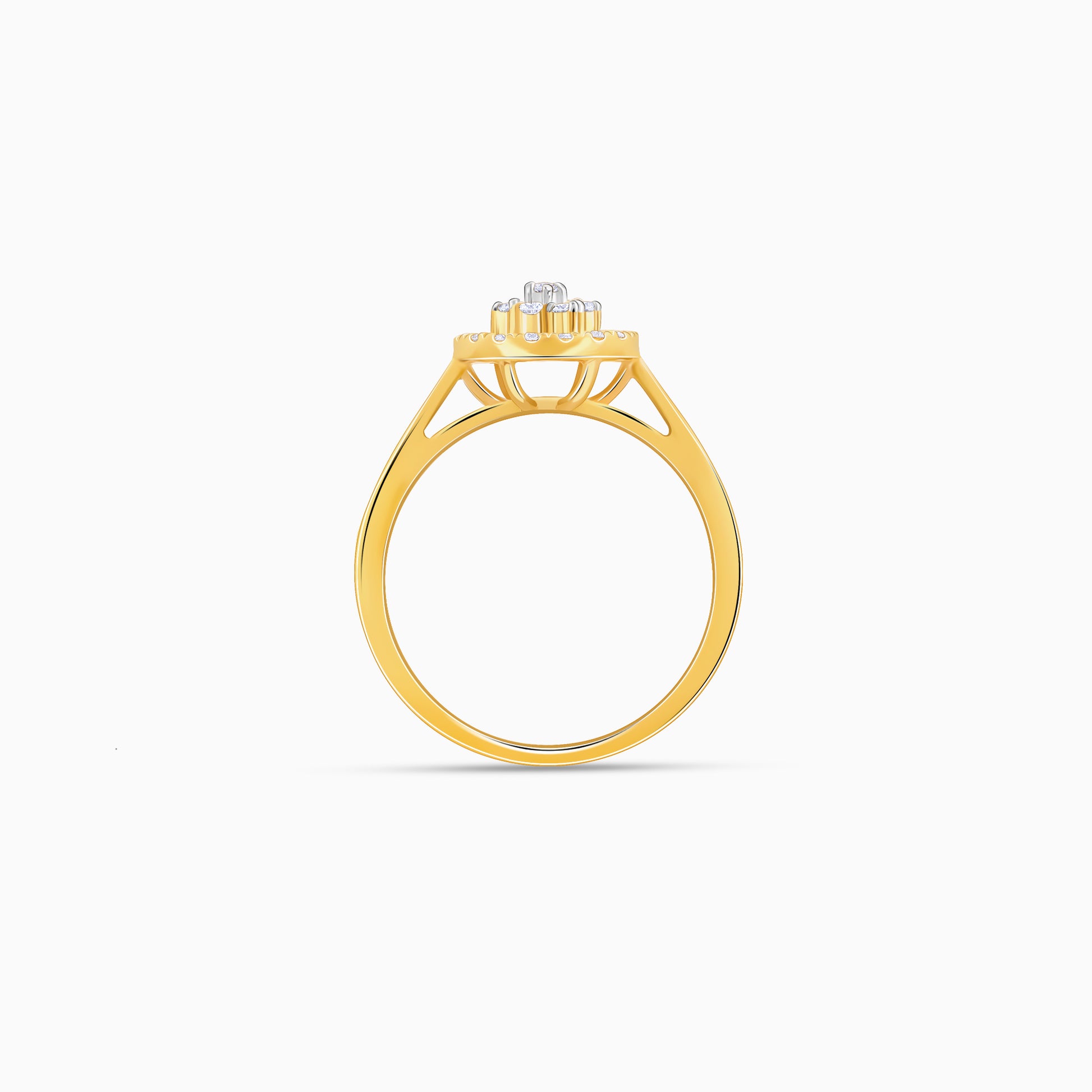 This pure gold ring for women features a halo motif showcasing a cluster design at the centre, studded with lab grown diamonds.