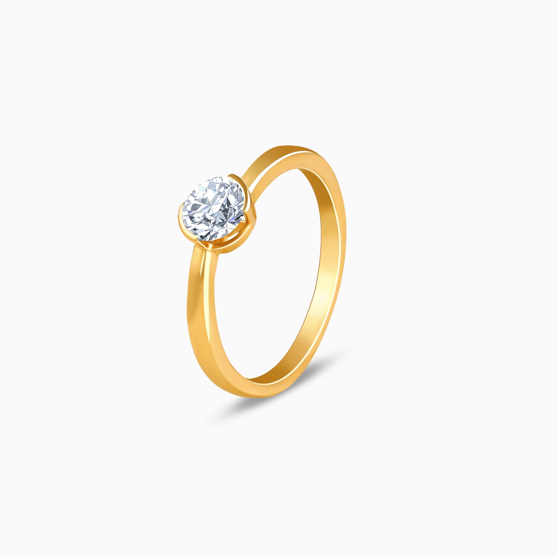 This pure gold ring for women features a polished, rounded band with a bezel-set lab grown solitaire at its centre.