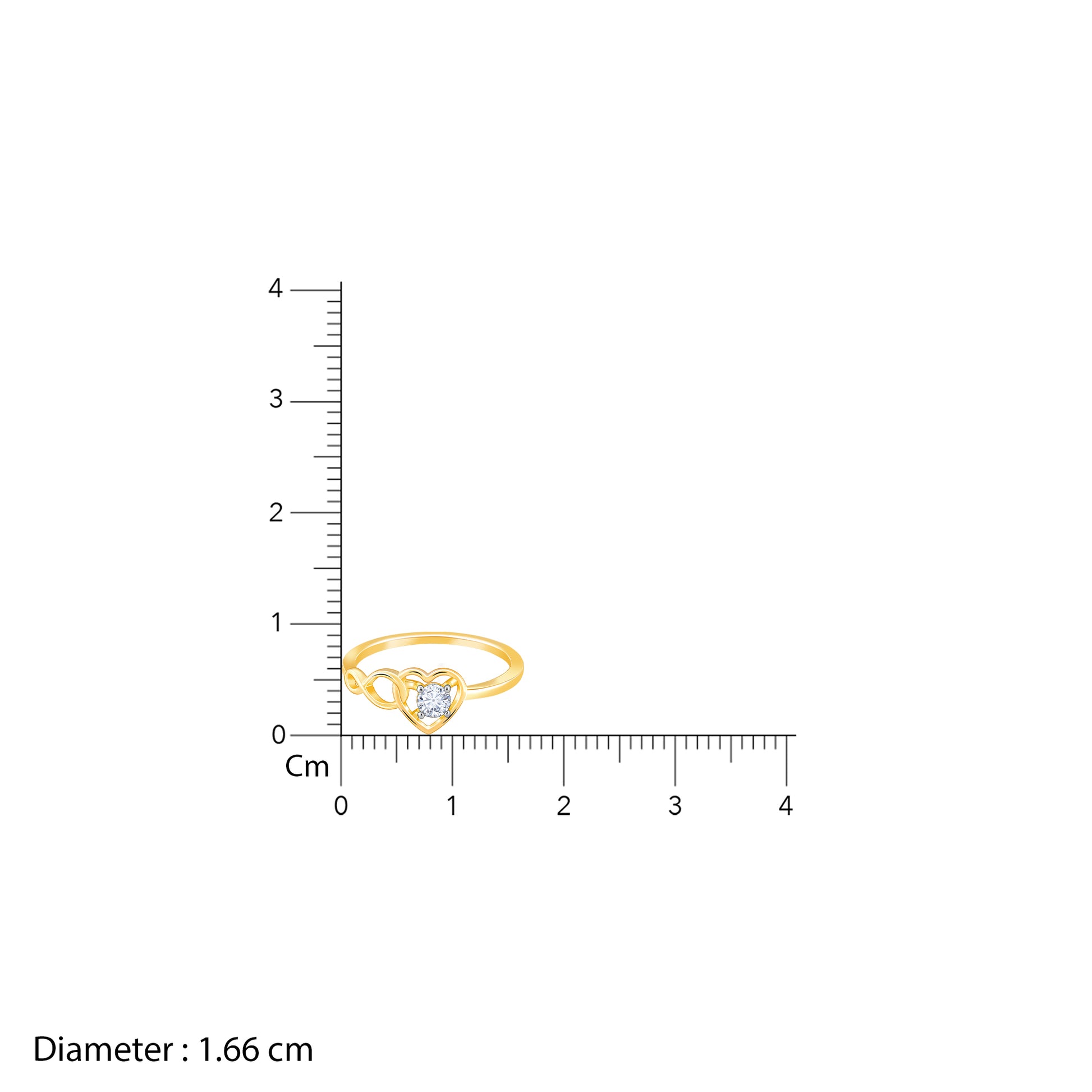 This gold ring has a heart in the centre flanked by an infinity sign. A lab-grown diamond is set at the centre of the heart.