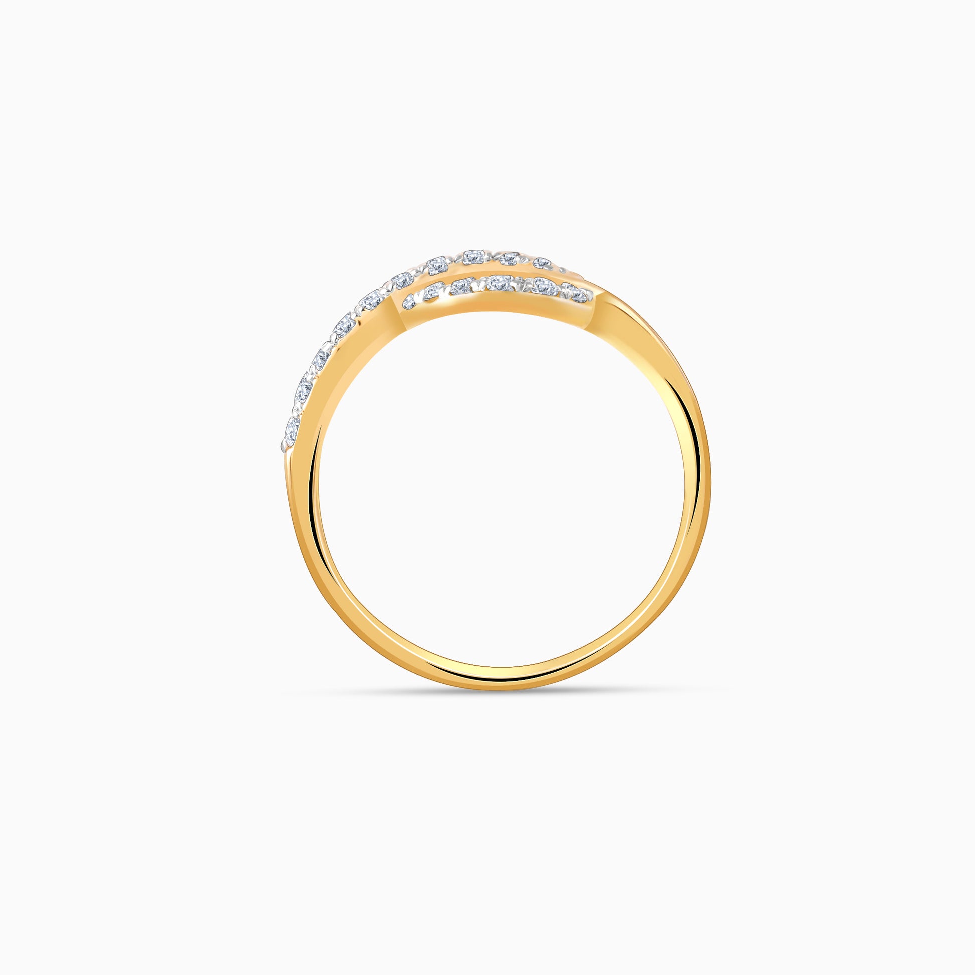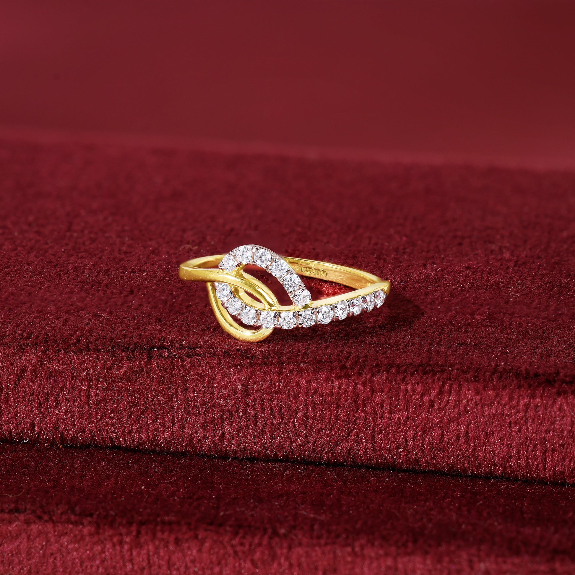 This pure gold ring for women features a stunning design with two interlocking loops. One loop is set with a pavé of sparkling lab grown diamonds, creating a fluid and elegant look.
