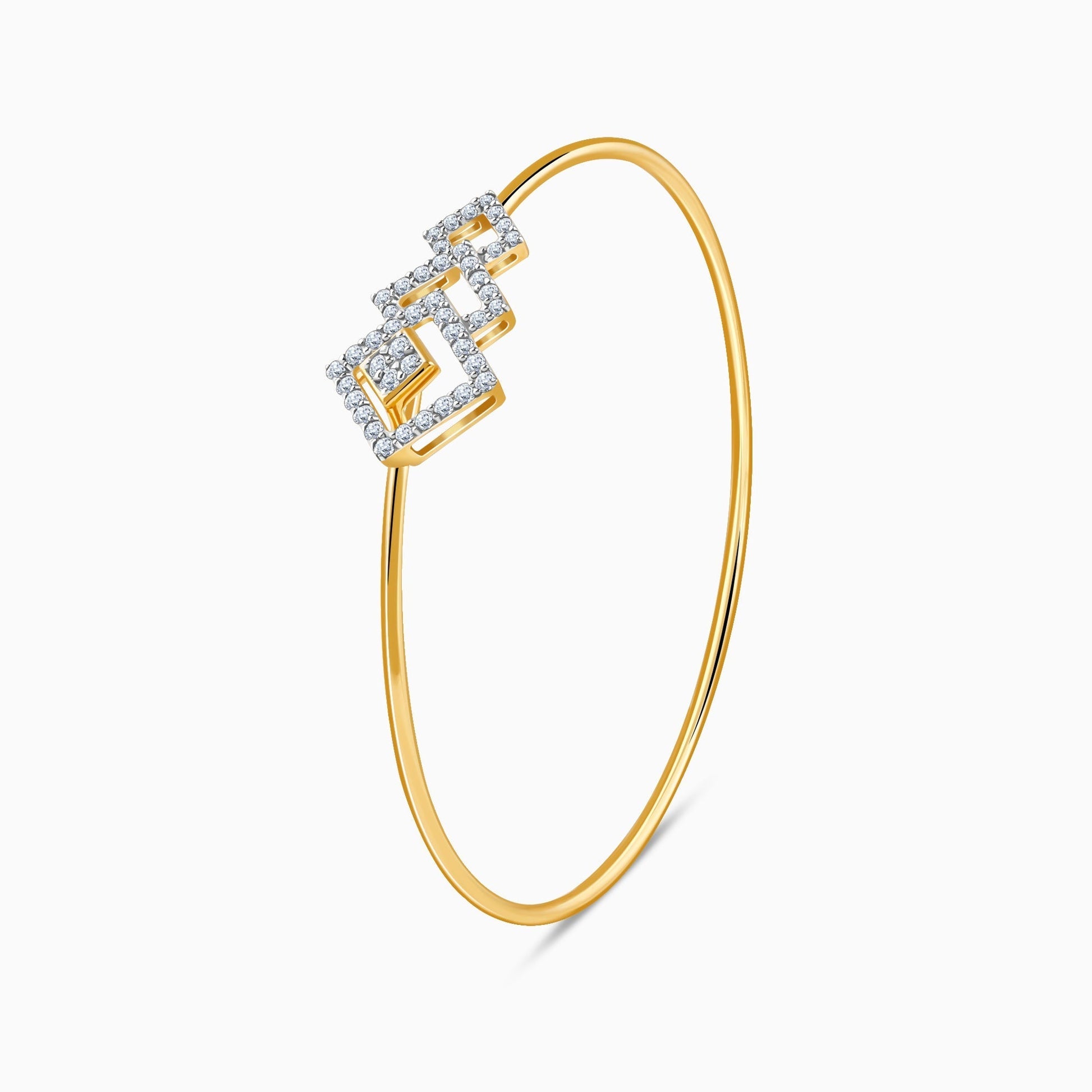 This pure gold bracelet for women features a three-interlocking rhombus design set with lab grown diamonds.