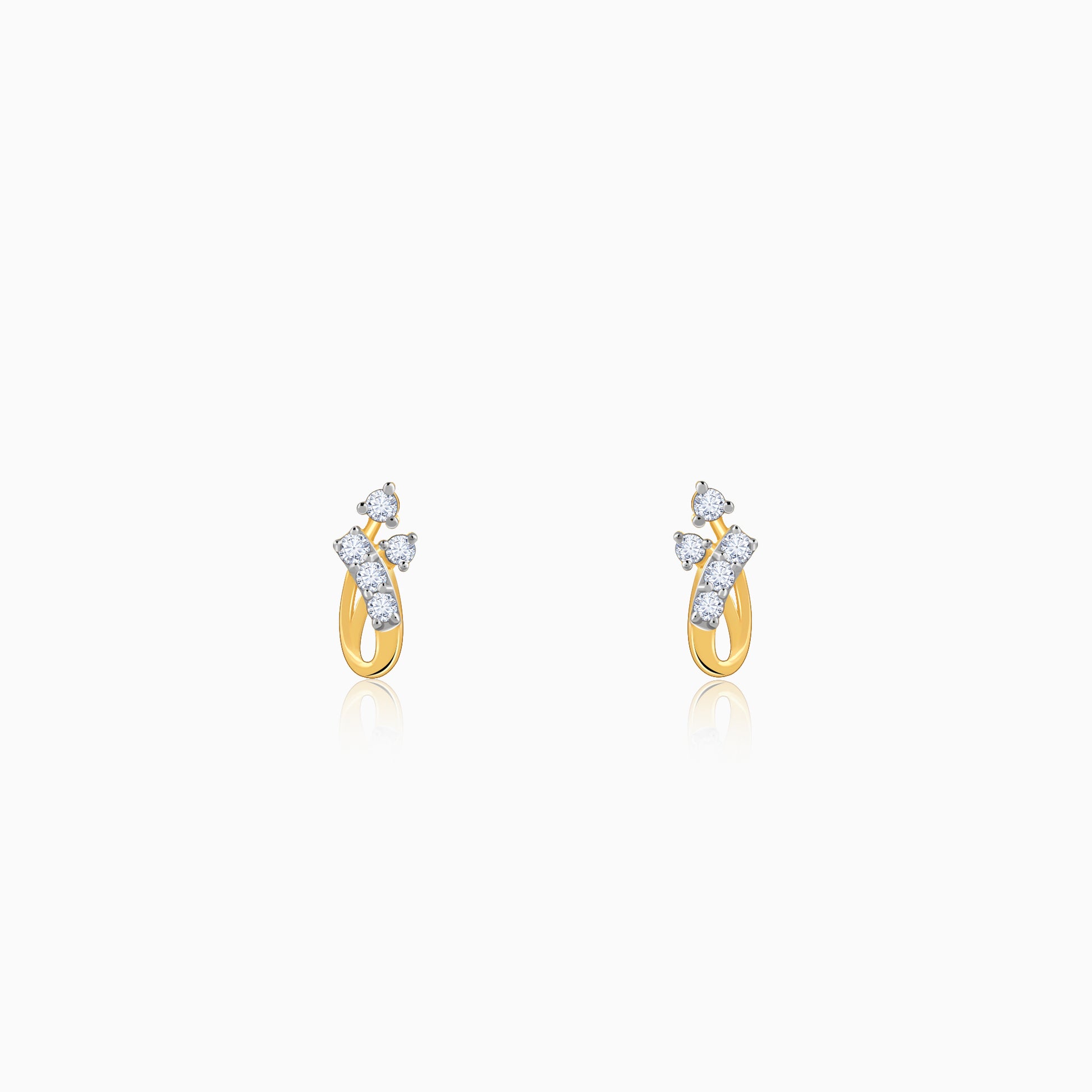 These gold earrings feature elegant swirling bands with lab grown diamonds that intersect gracefully, brought together by a single diamond at the centre for a refined, fluid look. Try the exquisite lab grown diamond jewellery from Heer By GIVA today.