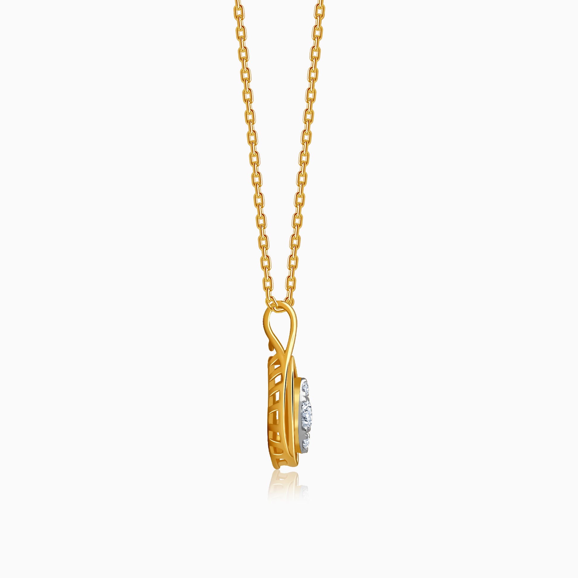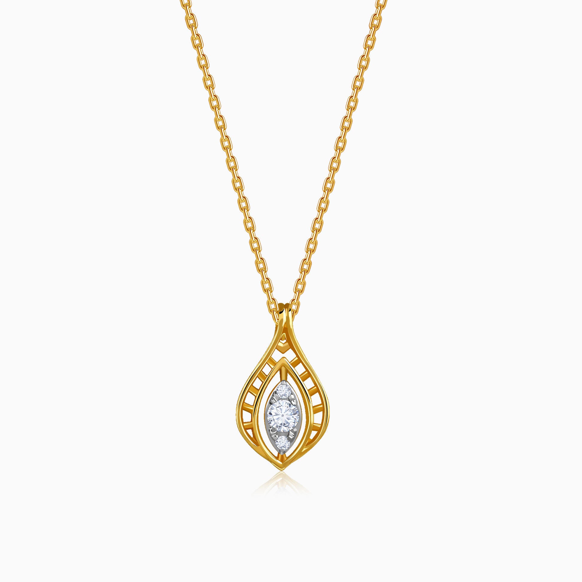 Crafted for the woman who appreciates layered detail and thoughtful design, this pendant brings depth and movement to a classic form. The concentric pear-shaped silhouette features a lattice pattern in gold, centred with a pear shaped lab grown diamond that draws the eye with quiet brilliance. Try the exquisite lab grown diamond jewellery from Heer By GIVA today.