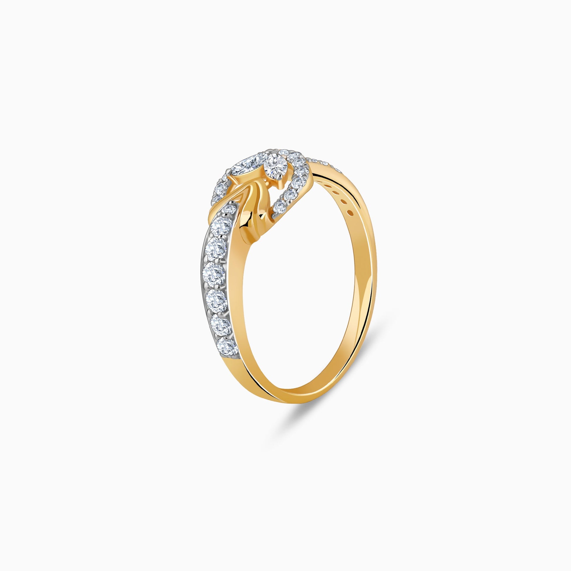 This pure gold ring features a unique leaf motif with intricate details studded with lab grown diamonds.