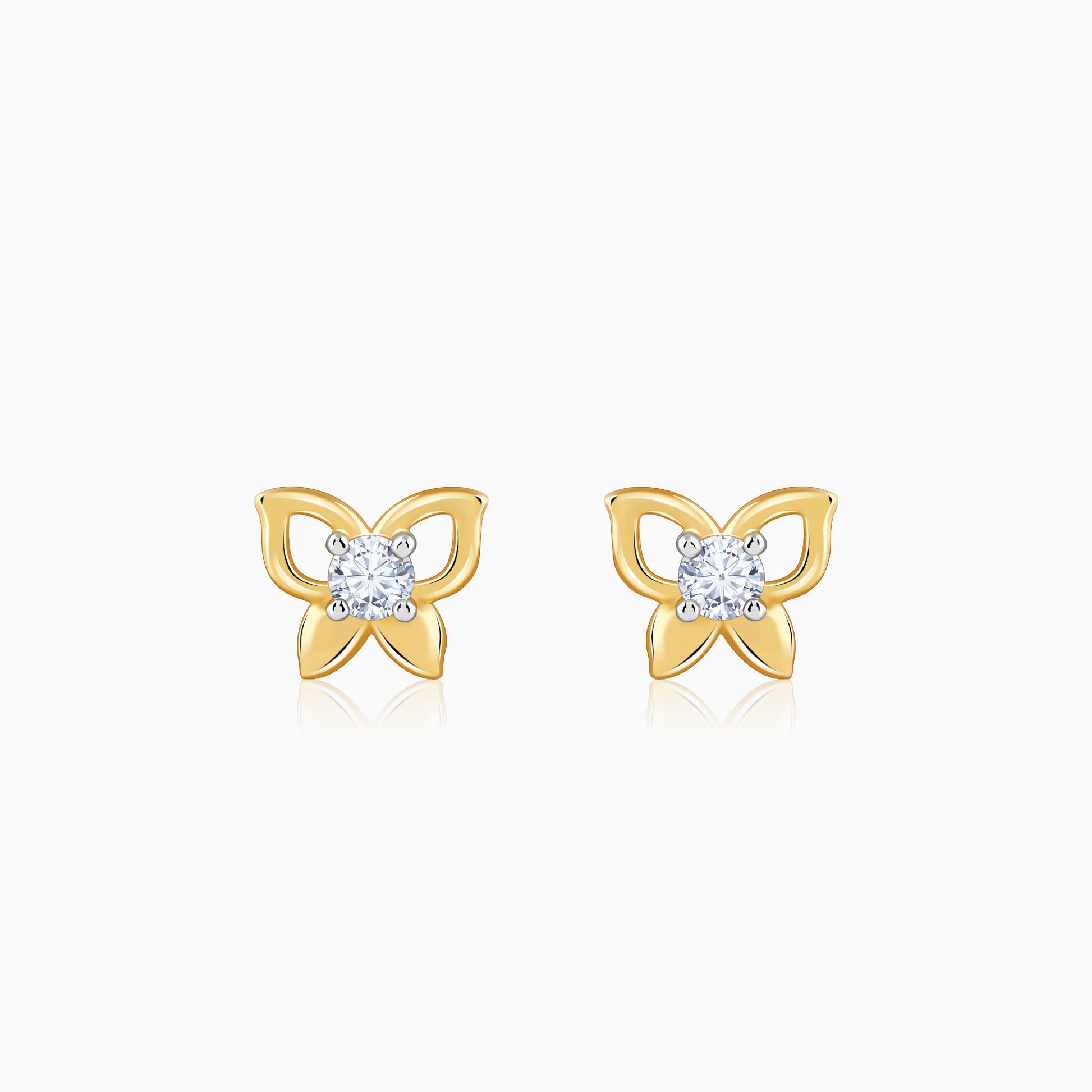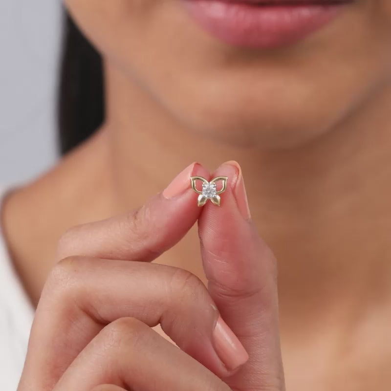 These gold earrings for women feature a butterfly design with a brilliant-cut lab grown diamond at the centre.