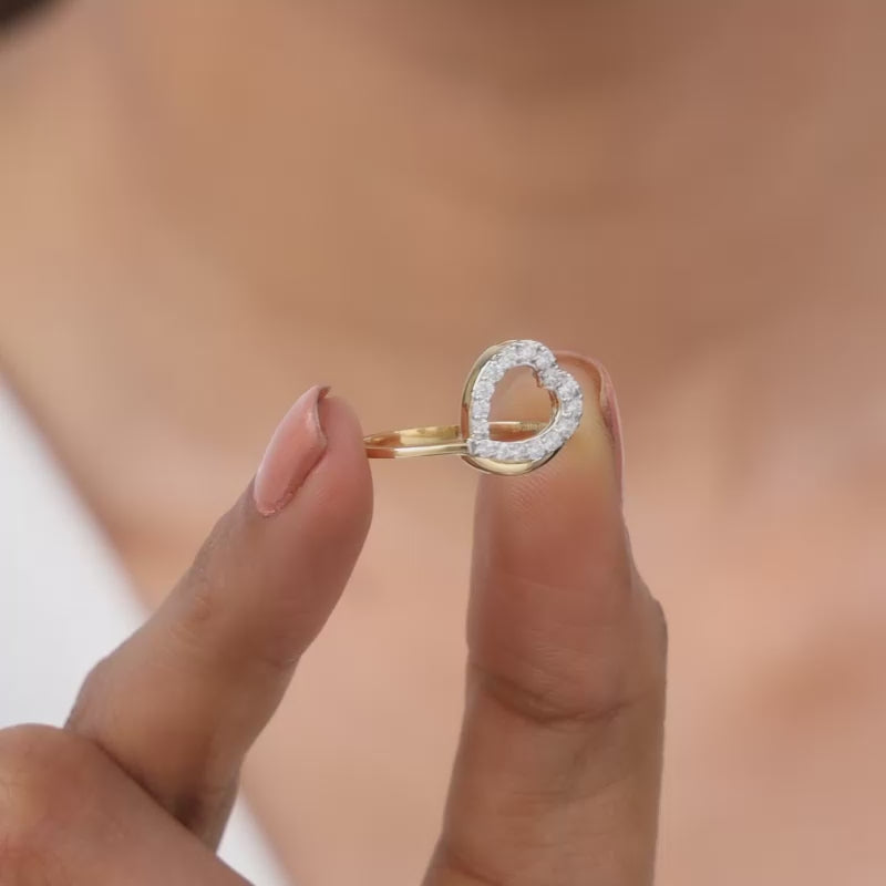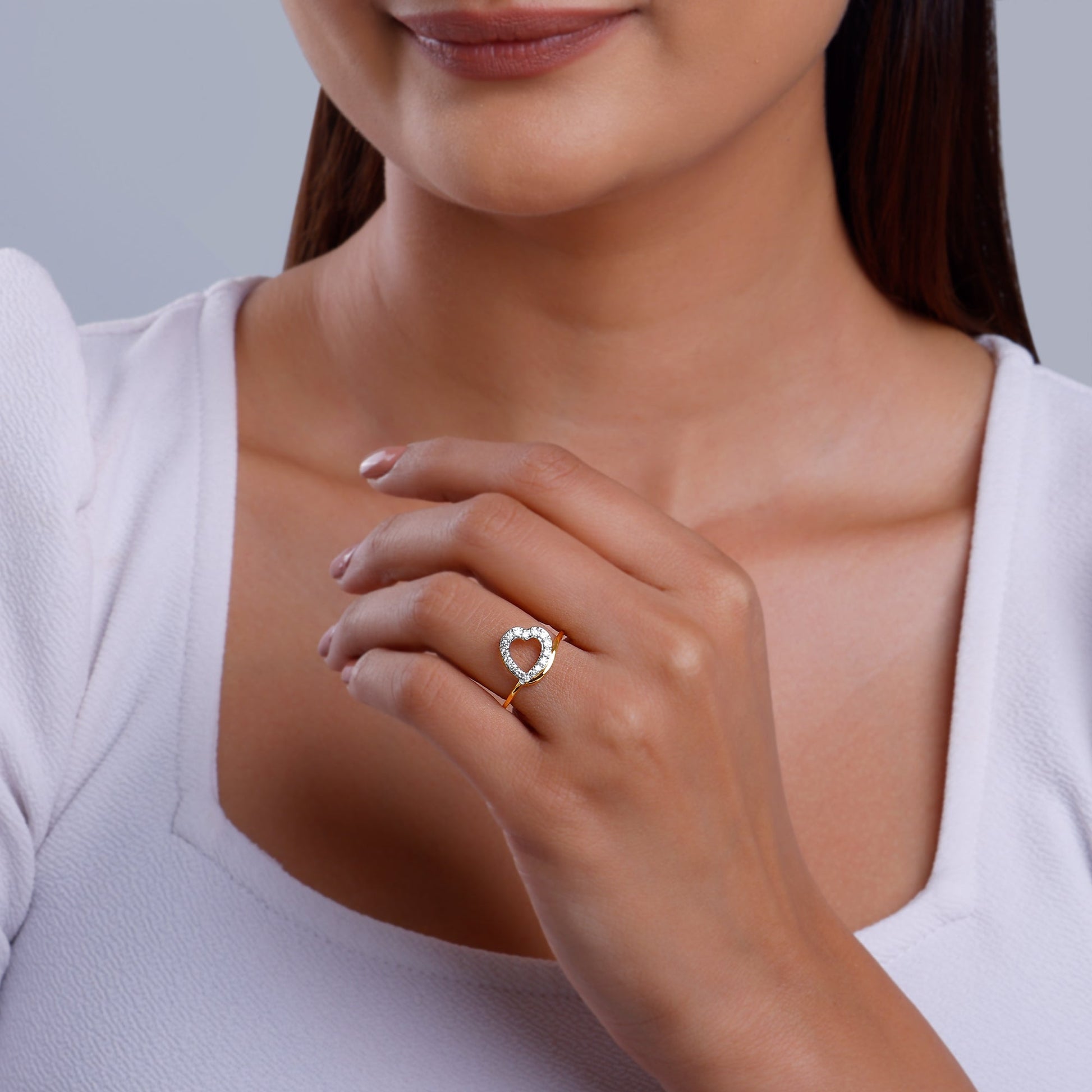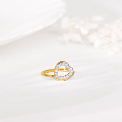 This pure gold ring for women features a tilted heart motif, studded with lab-grown diamonds.