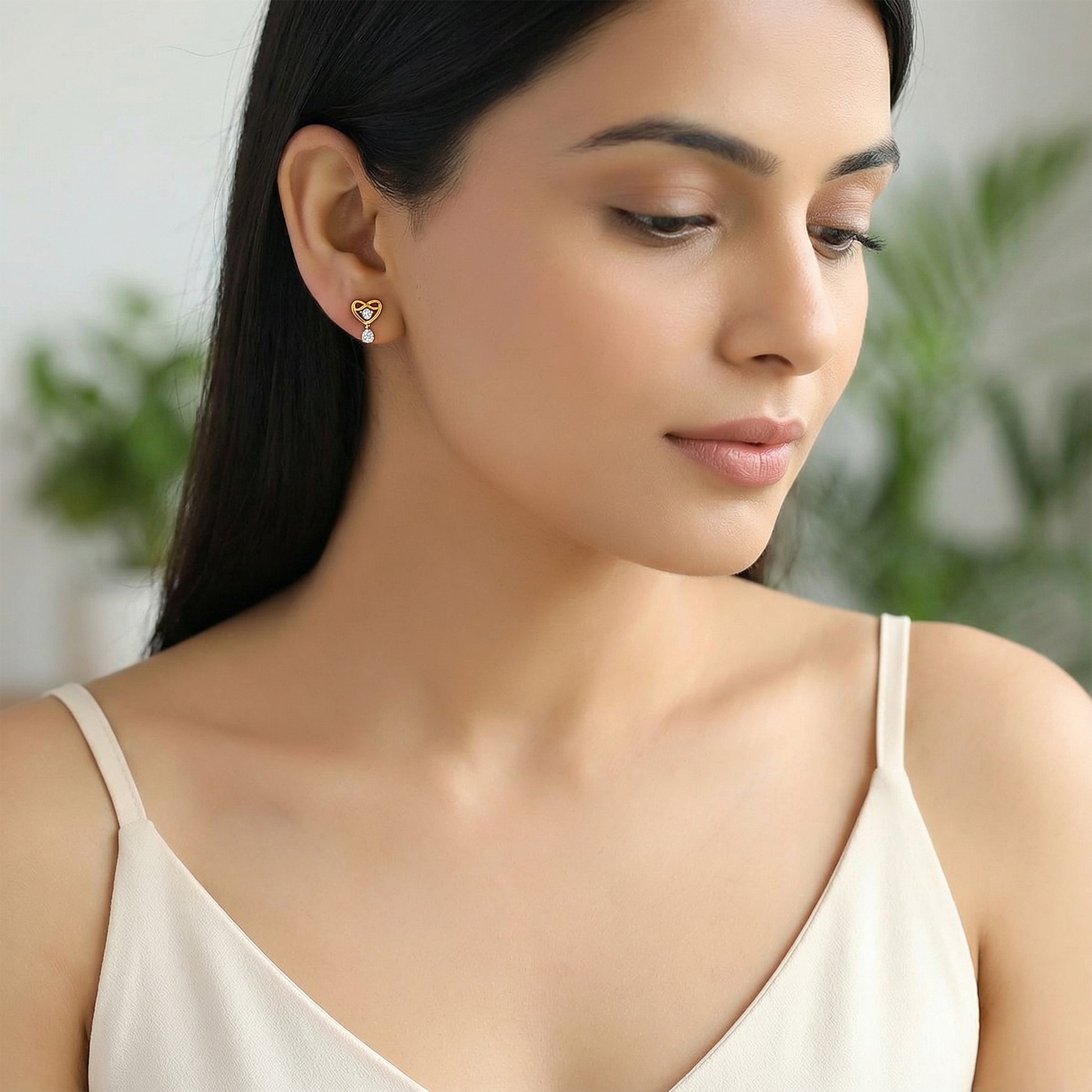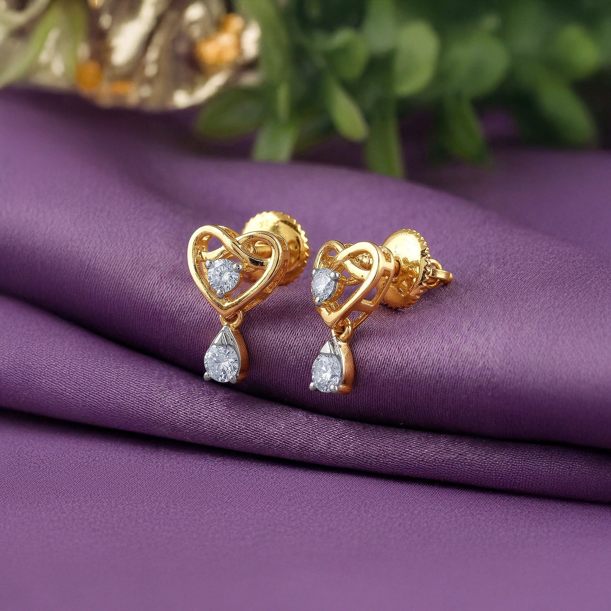 Swing into elegance. These gold earrings with a heart and dangling lab grown diamond bring refined sparkle to every move, designed for a modern, confident wearer. Try the exquisite lab grown diamond jewellery from Heer By GIVA today.