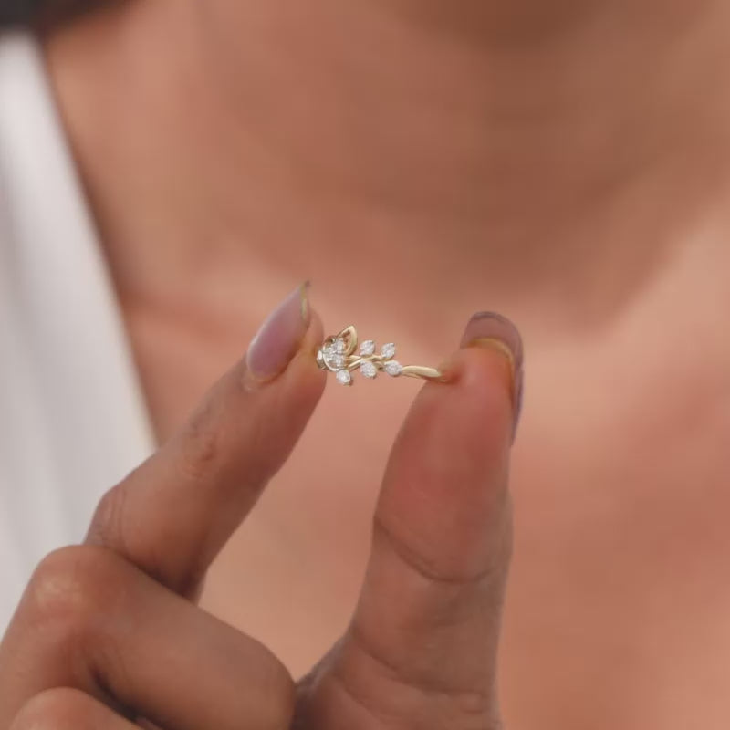 Florals, but make it a power move. This isn't just a ring—it's a sparkling, ever-blooming design that says you're ready to grow and glow. This gold ring has a gorgeous leaf motif where lab diamonds make up for leaves. Try the exquisite lab grown diamond jewellery from Heer By GIVA today.