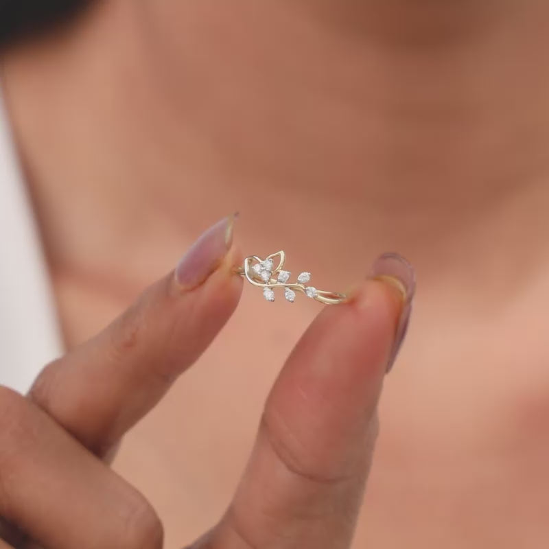 Inspired by the beauty of nature, this gold ring makes for a timeless gift. This gold ring for women has a gorgeous leaf design set with lab grown diamonds. Try the exquisite lab grown diamond jewellery from Heer By GIVA today.