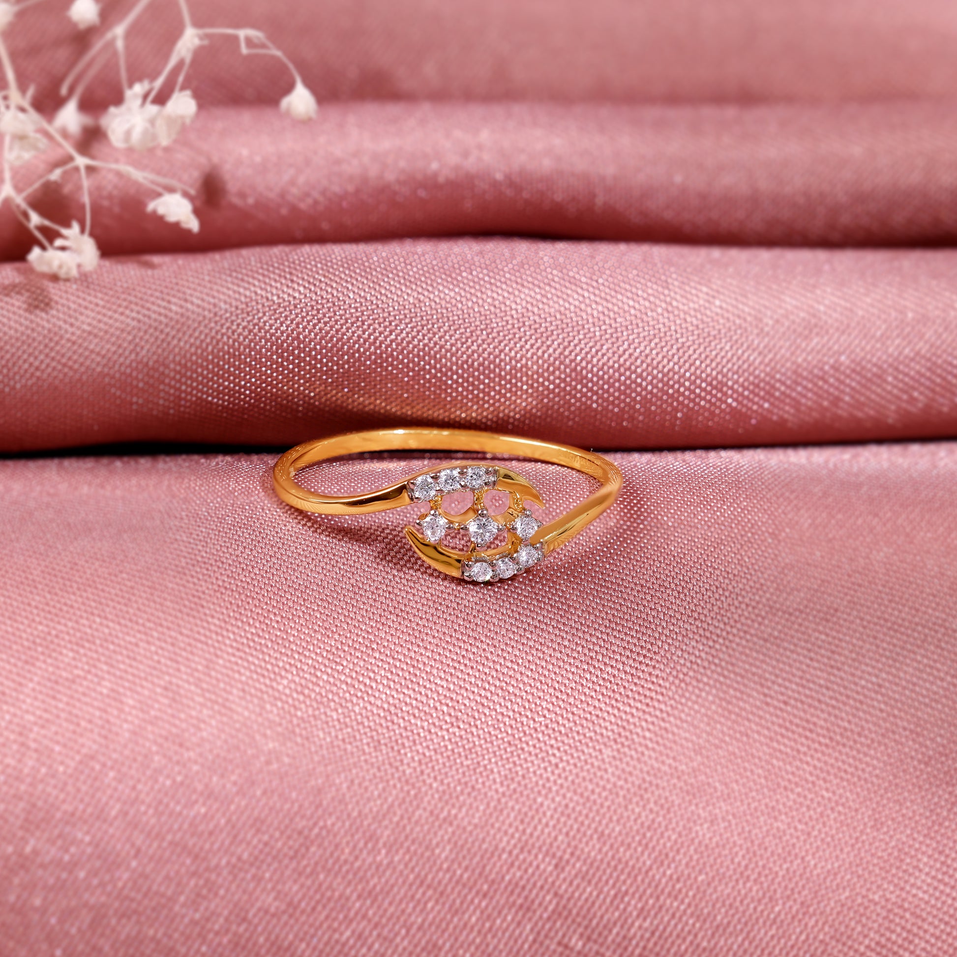 This pure gold ring has an oval design, in a bypass shank nestling lab grown diamonds.