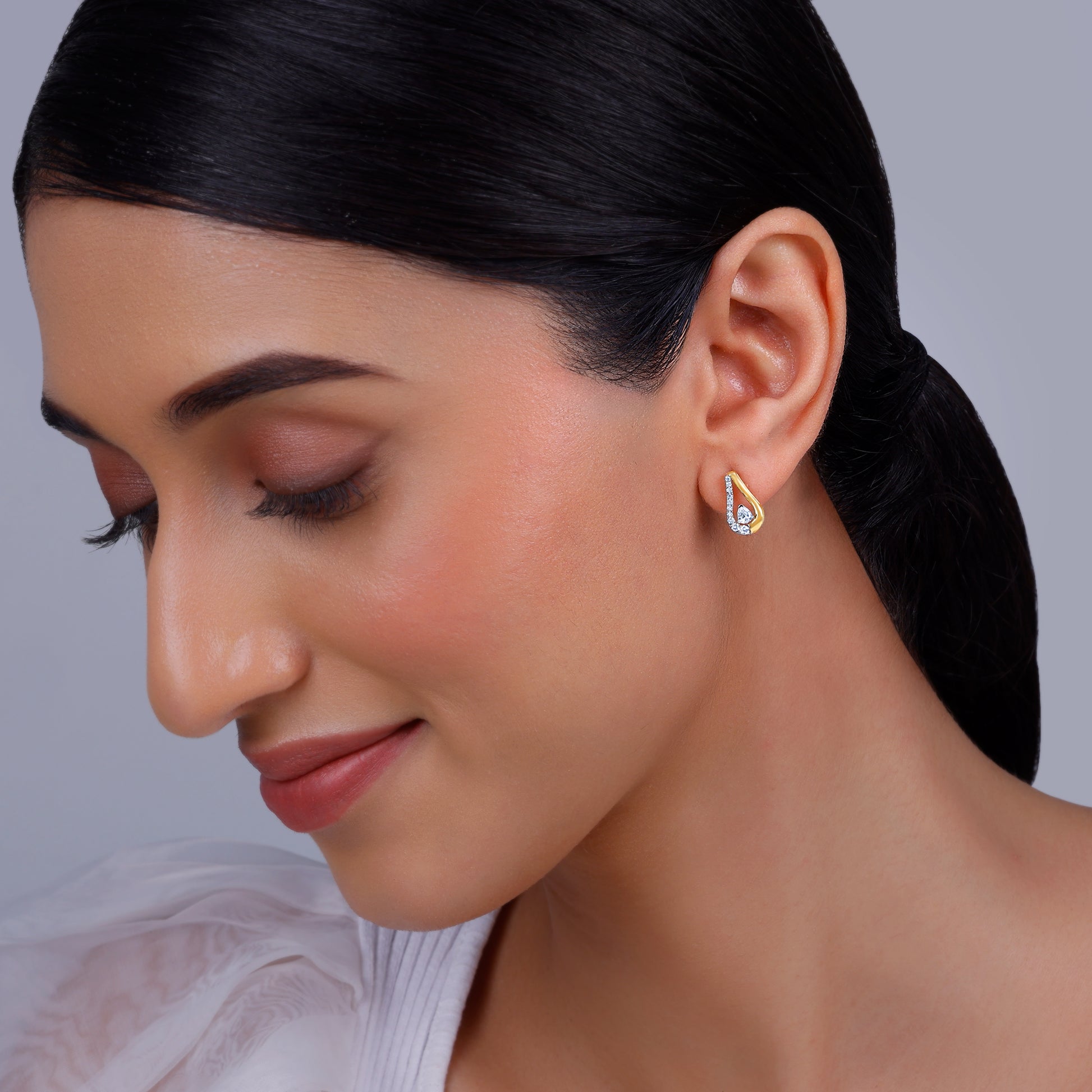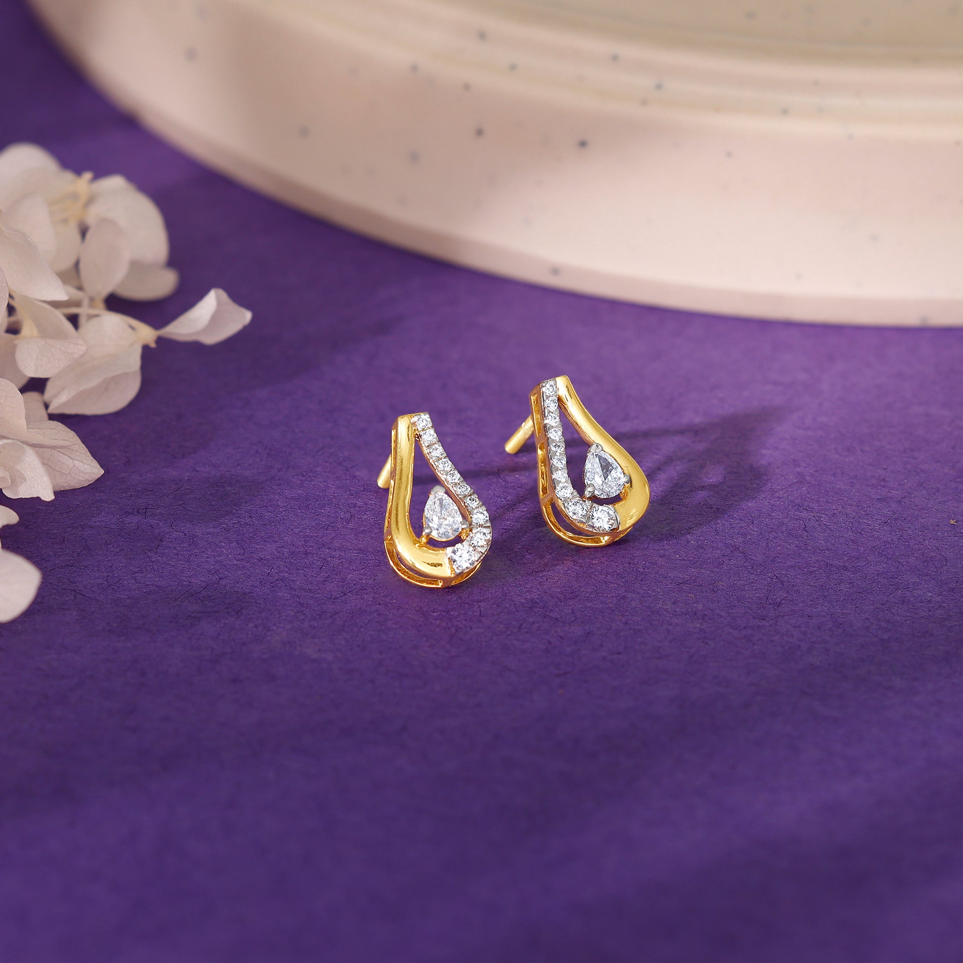These pure gold studs feature a teardrop shape with an accent within, studded with a lab diamond. The teardrop shape is also partially covered with smaller diamonds.