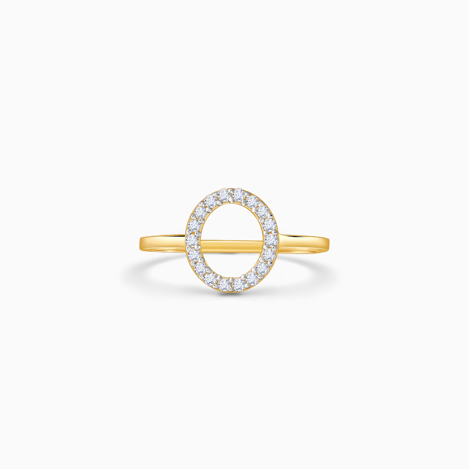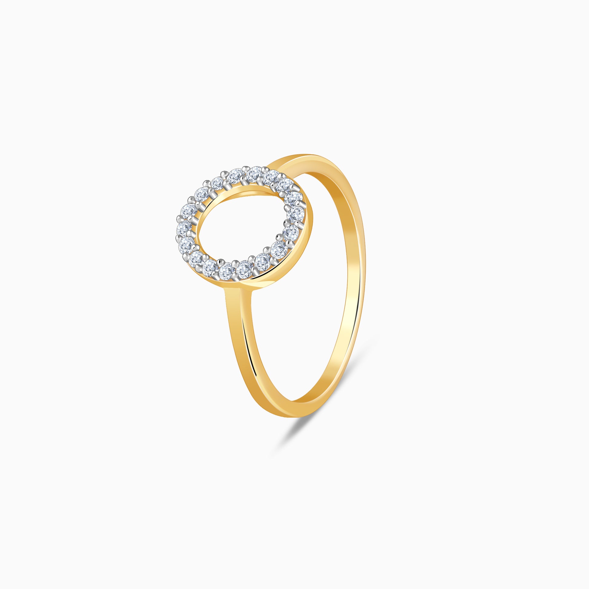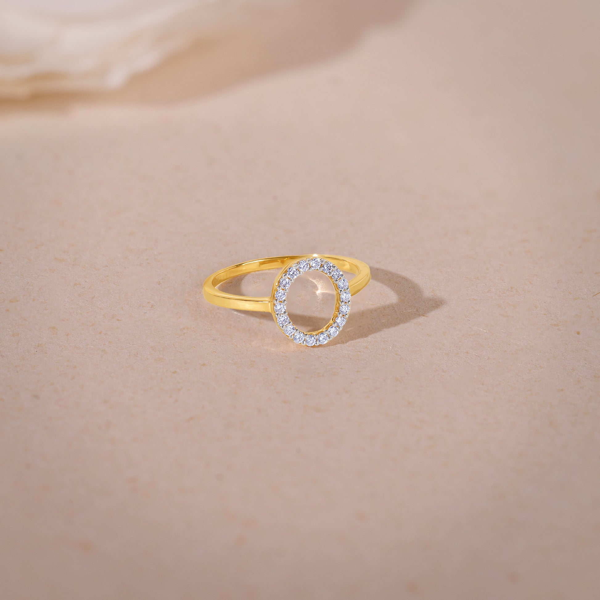 This pure gold ring for women has a circle motif studded with lab grown diamonds.