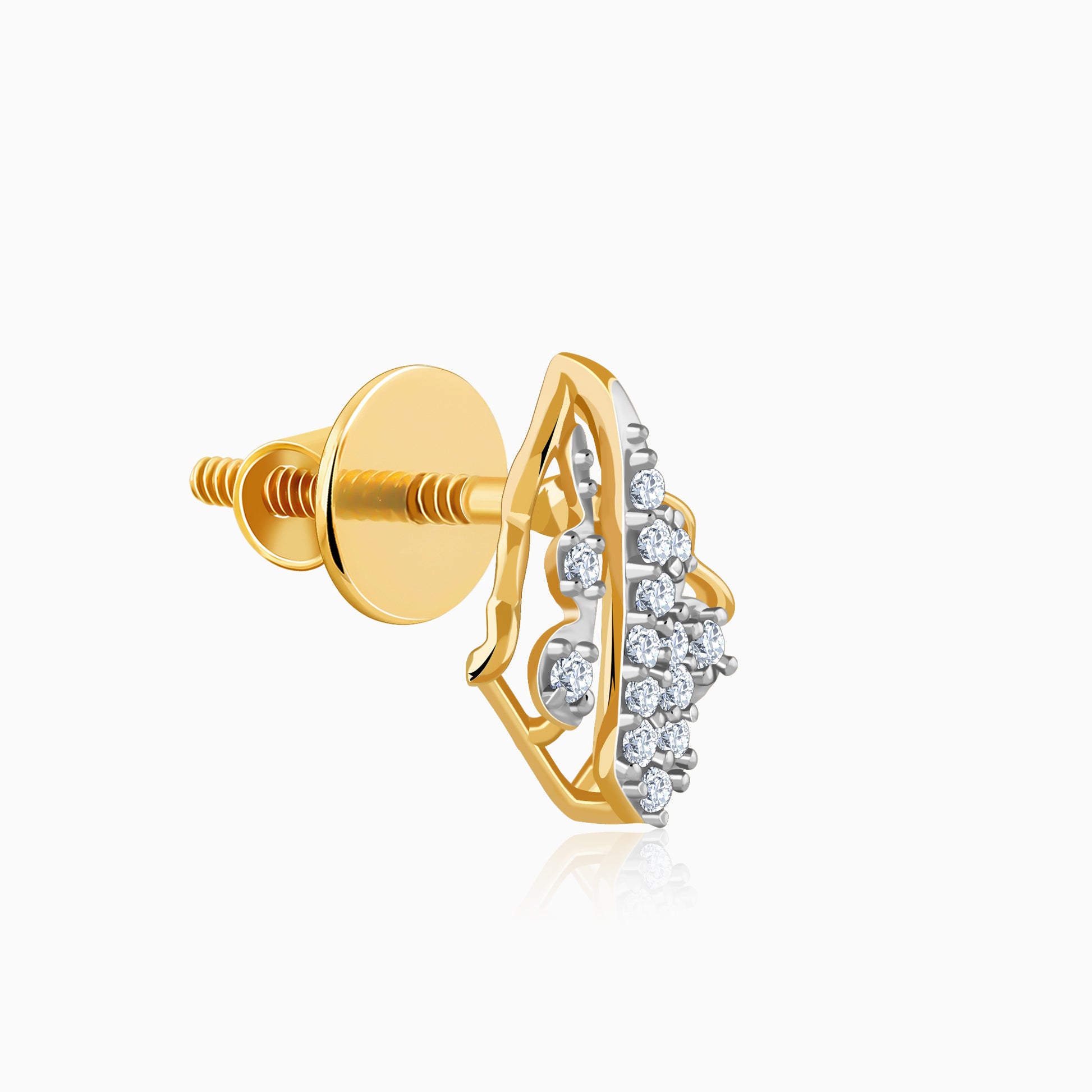 Inspired by the majestic fan-like flourish of classical architecture, these gold studs are a testament to sophisticated grandeur. These gold stud earrings feature a prominent shield-like or fan-shaped silhouette, entirely covered in a dazzling pave of lab grown diamonds. Try the exquisite lab grown diamond jewellery from Heer By GIVA today.