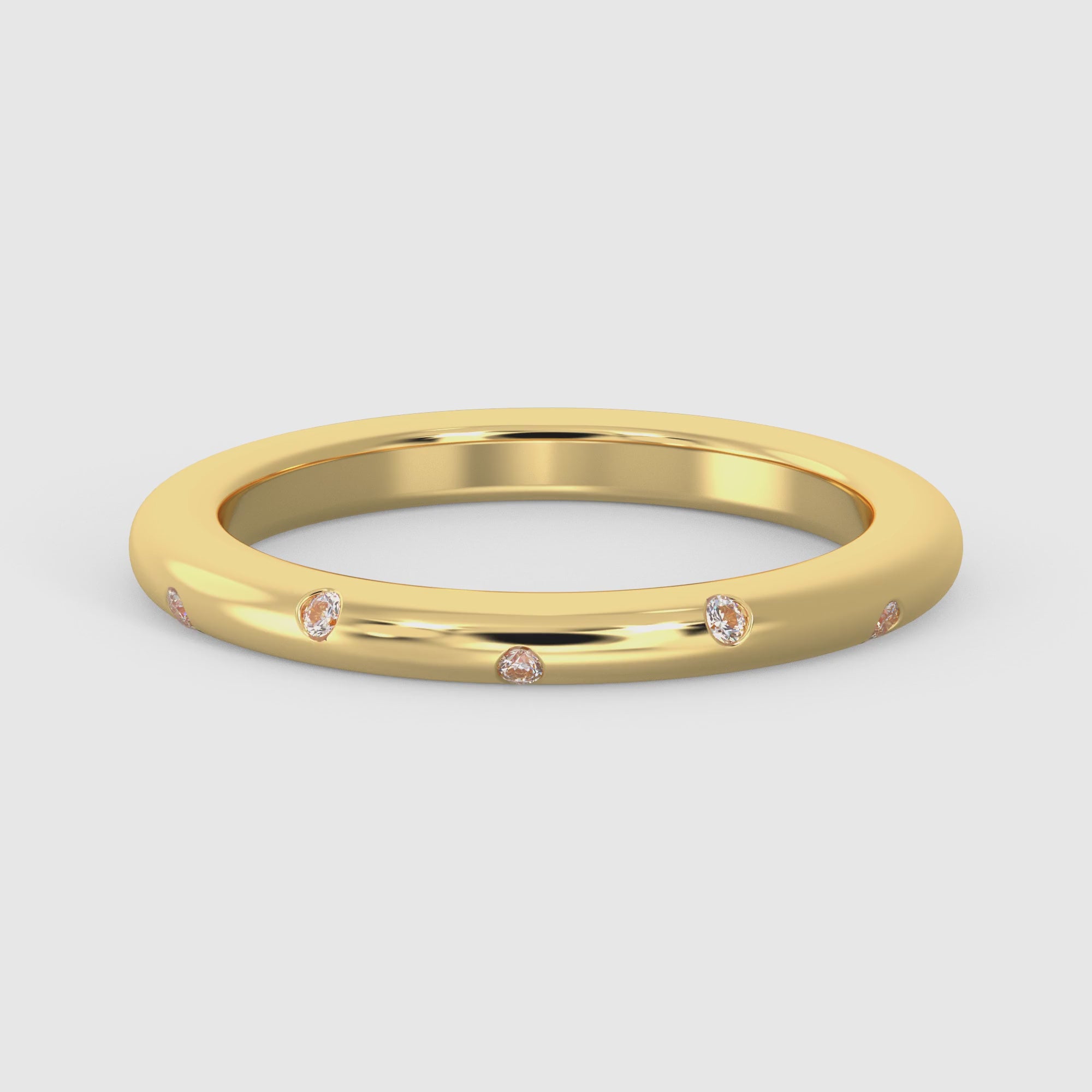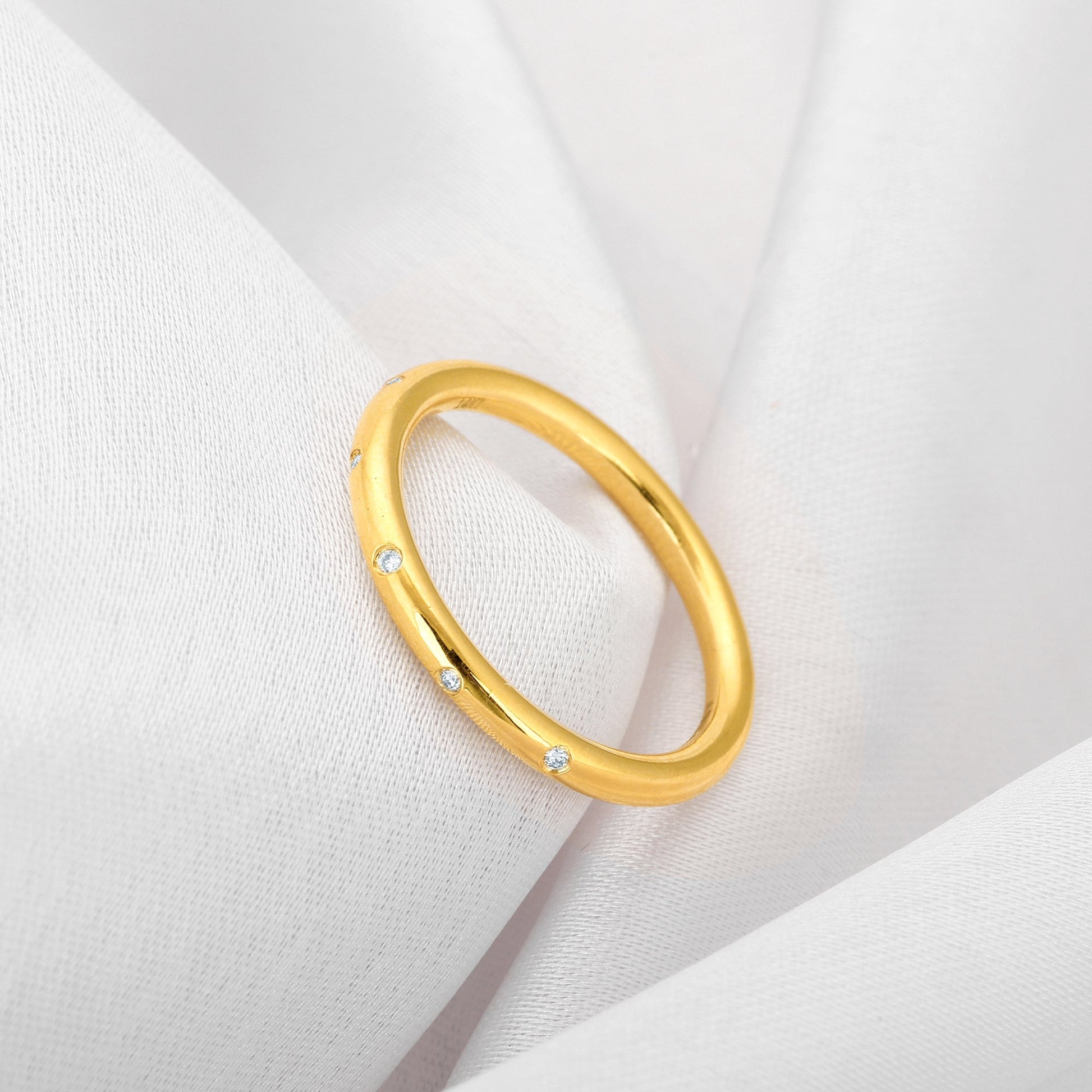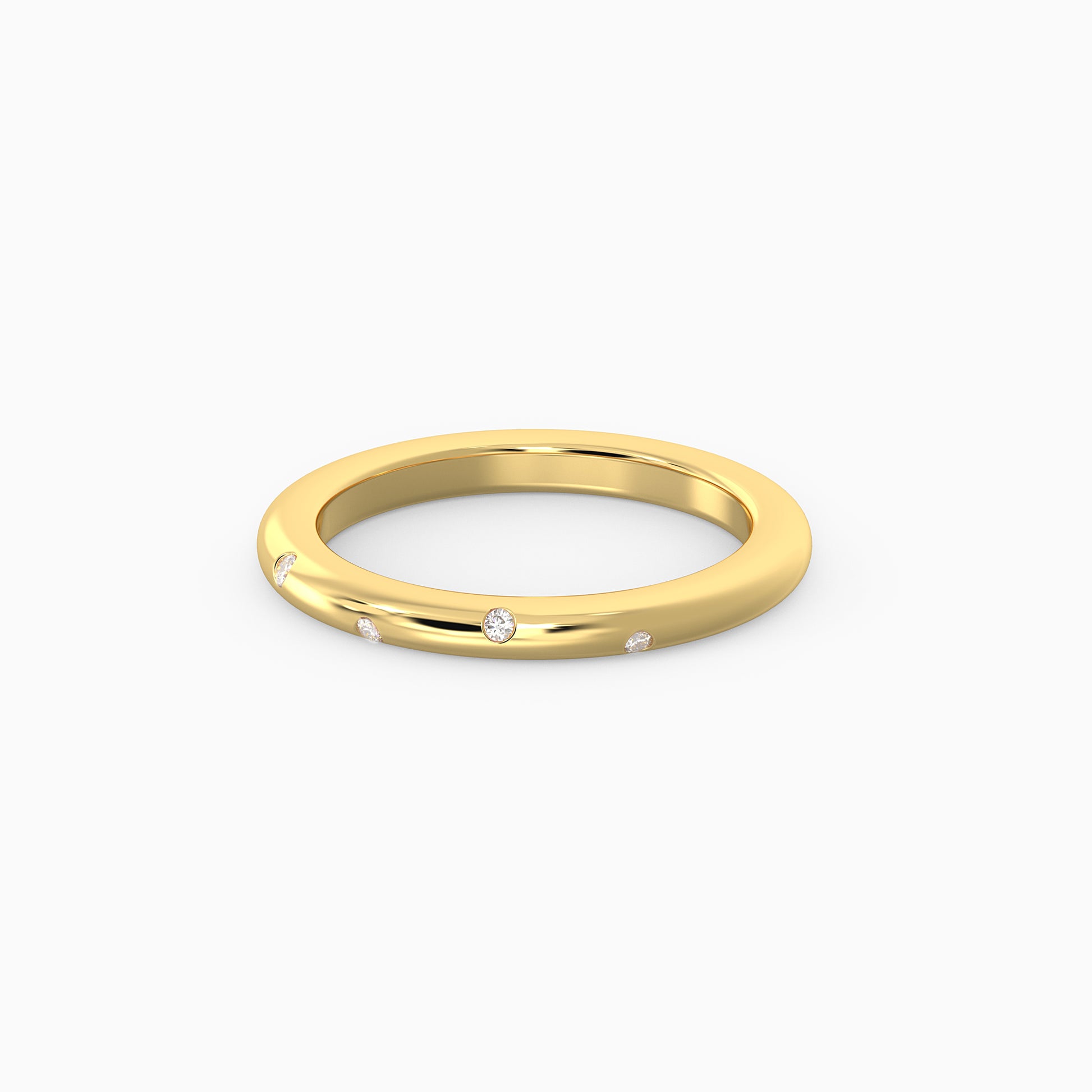 This gold ring has a classic rounded band with lab-grown diamonds in a flush-setting.